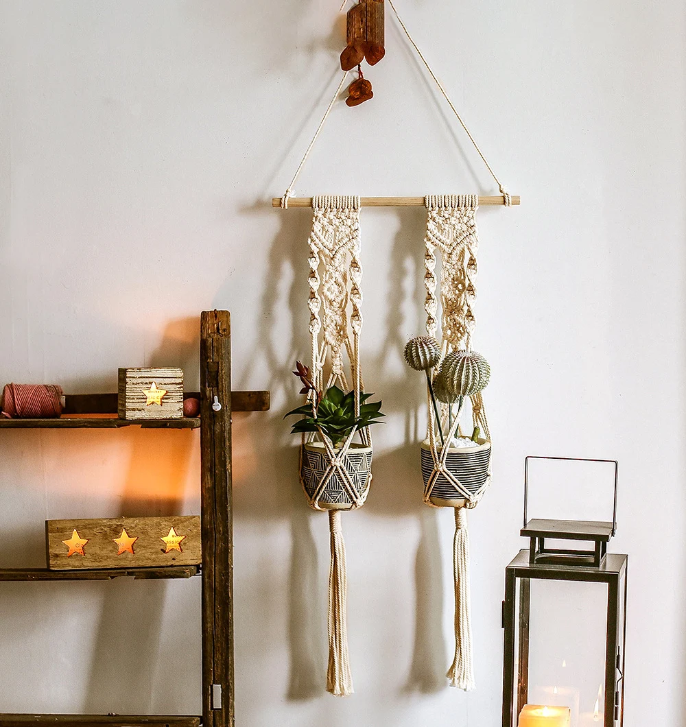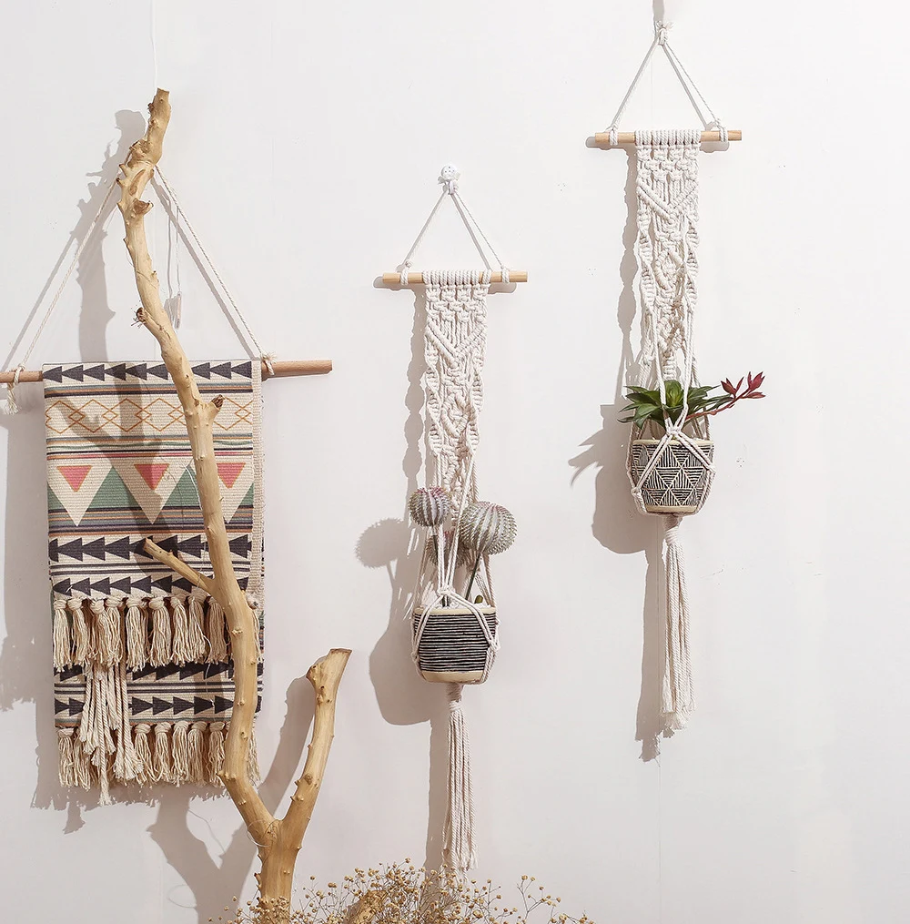 Подвесная корзина для макраме, богемный держатель для растений, цветочный вешалка для кашпо, настенный мини-гобелен, домашний декор