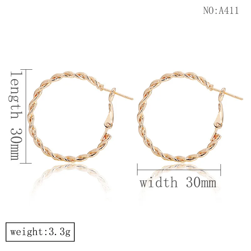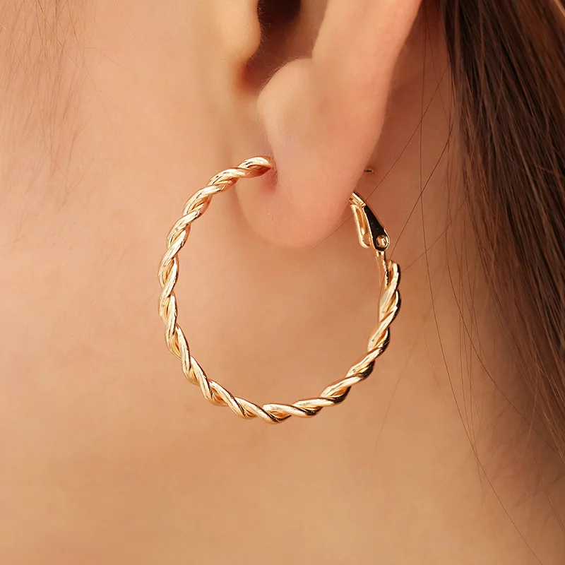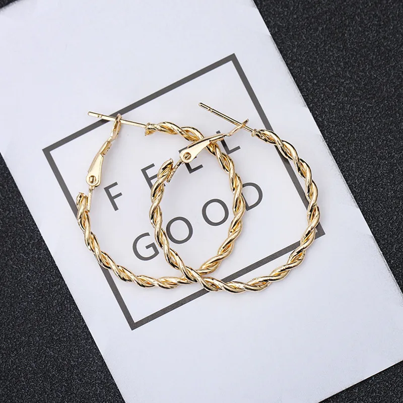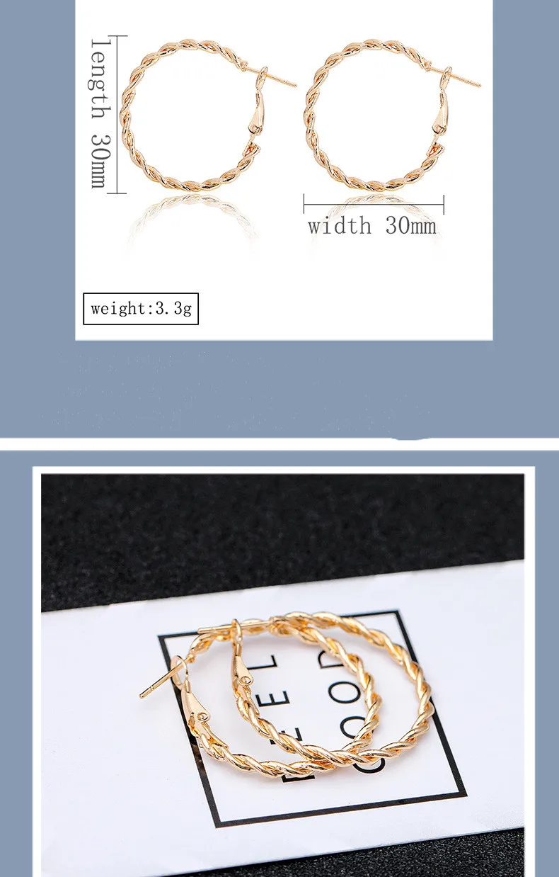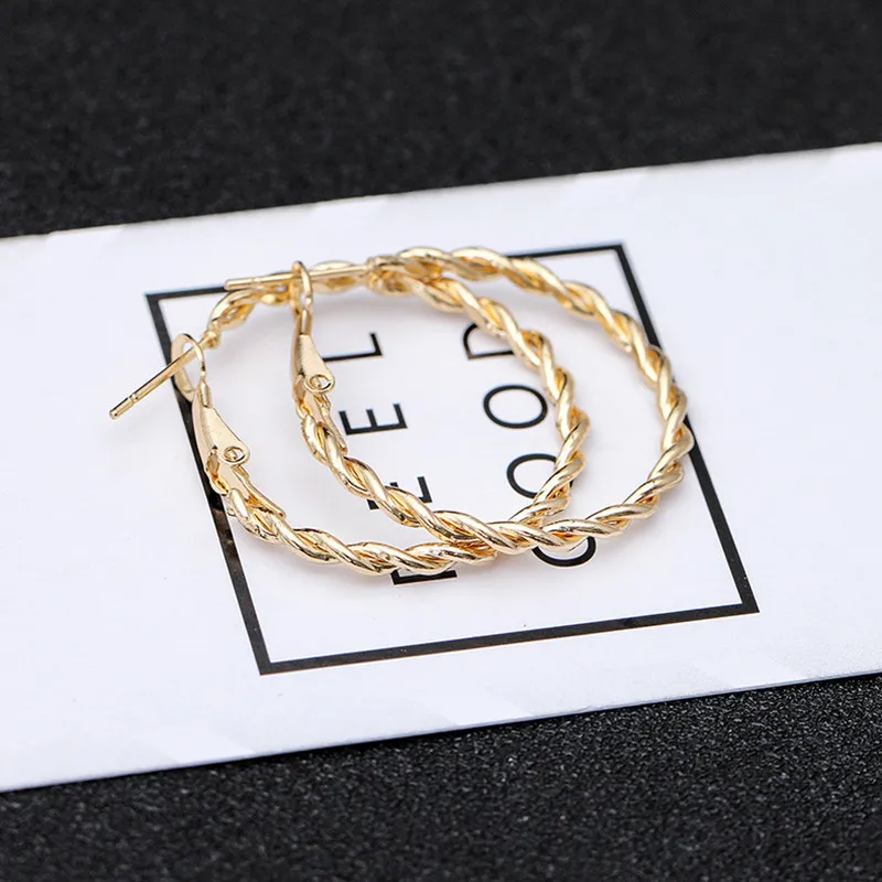 Лидер продаж круг серьги в виде колец, золотистого цвета скрученный...