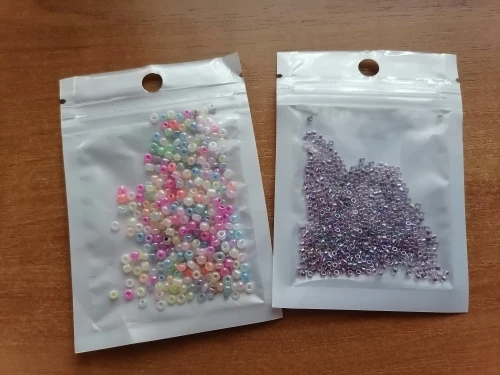 Хороший бисер! Он какой-то хамелеон: походит и к полупрозрачным белым бусинам, и к розовому кварцу. Вроде как маленькие жемчужинки, и в то же время как проставочные бусины хорошо подходит к матовым. Насчёт покрытия пока не поняла, есть ли оно. Будем смотреть в деле. Сейчас очень довольна! Спасибо за быструю работу и подарочек!