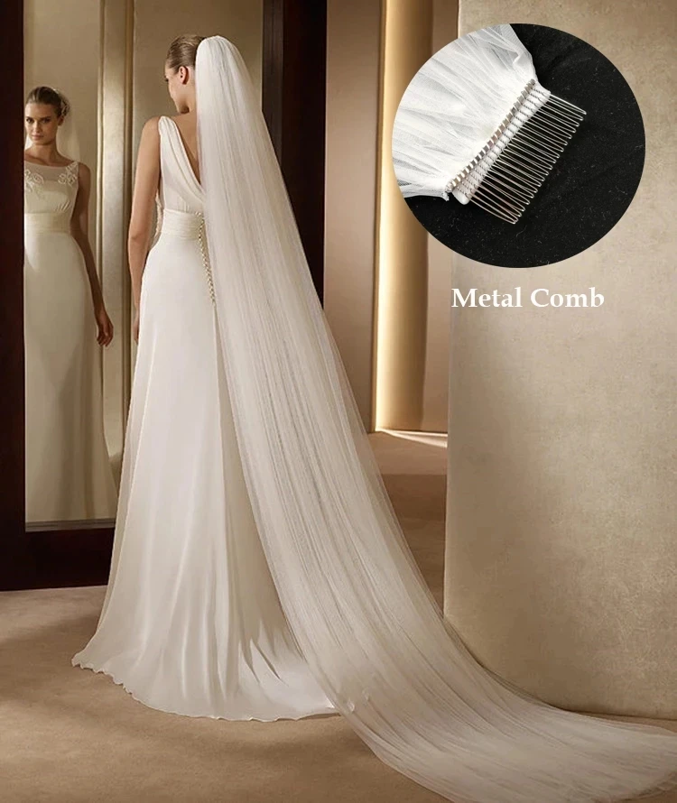 Оптовая продажа, мягкая Тюлевая Вуаль 3 метра 5 метров, белая, цвета слоновой кости, свадебная вуаль с металлической расческой, свадебный головной убор, Vestido De Noiva
