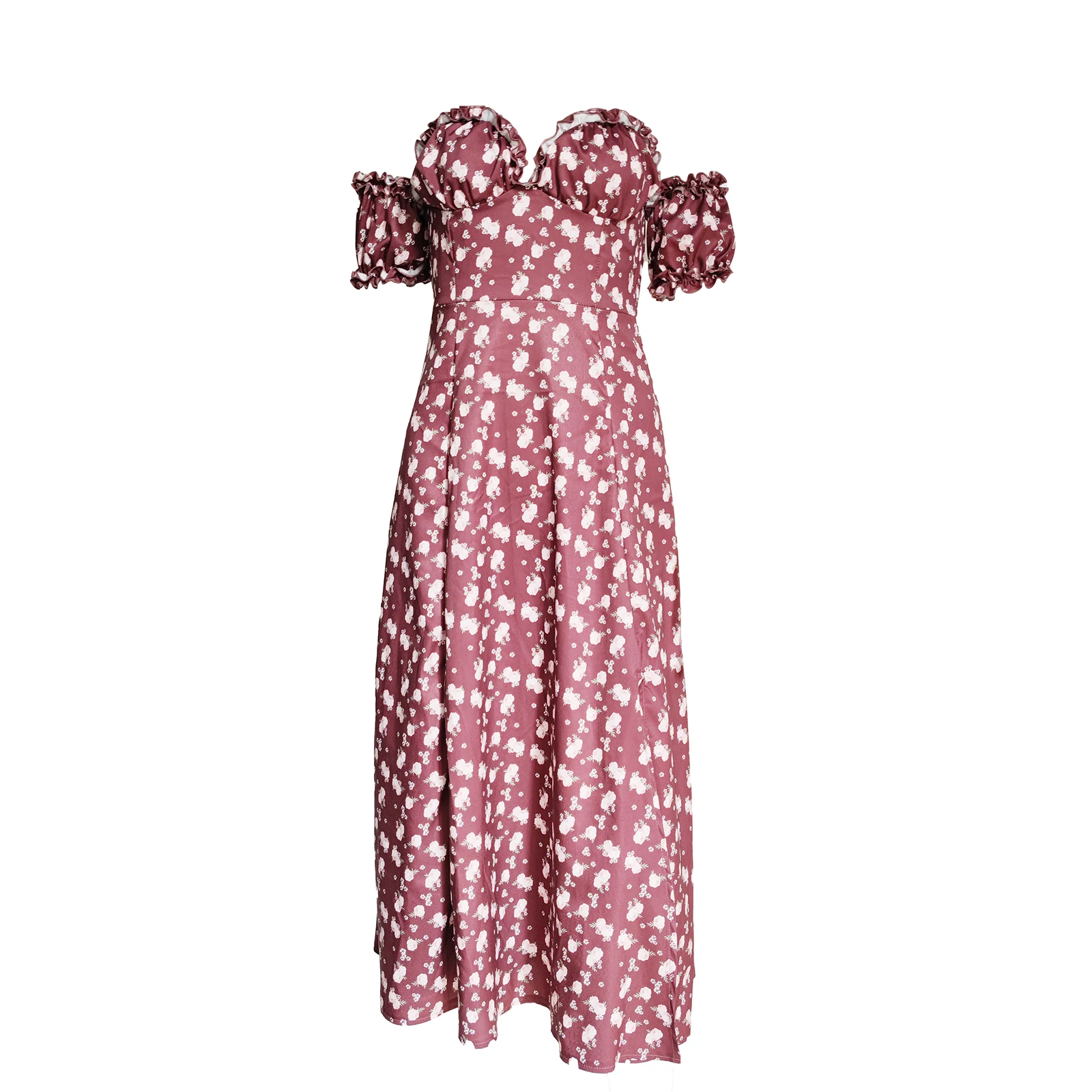Женское сексуальное платье с вырезом лодочкой, с цветочным принтом, с коротким рукавом и открытыми плечами, розовоевинно-красное