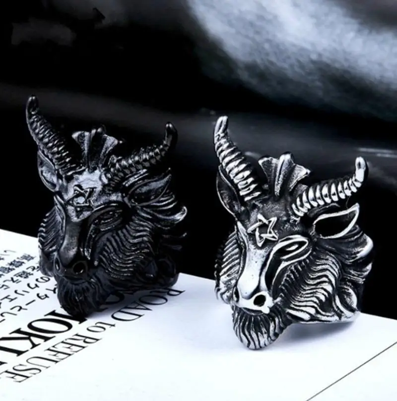 Мужское Винтажное кольцо в готическом стиле, из сплава, с козой сатаны, повседневное Ювелирное Украшение в стиле панк
