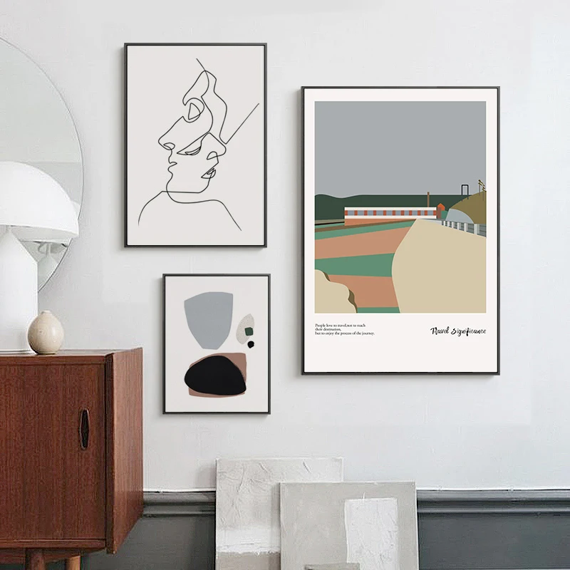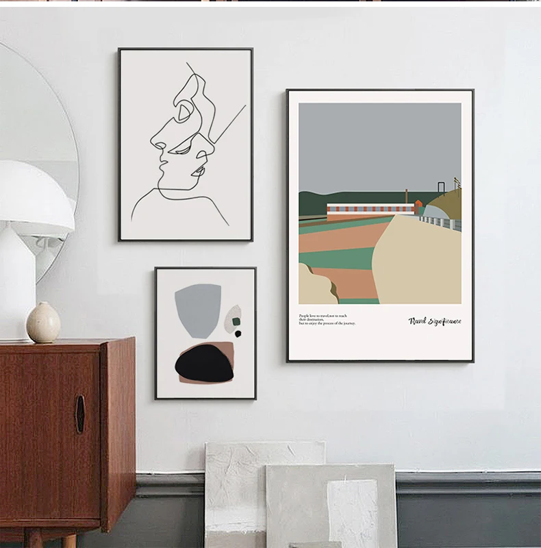 Абстрактная линия, рисование лица, холст, плакат, скандинавский Про...