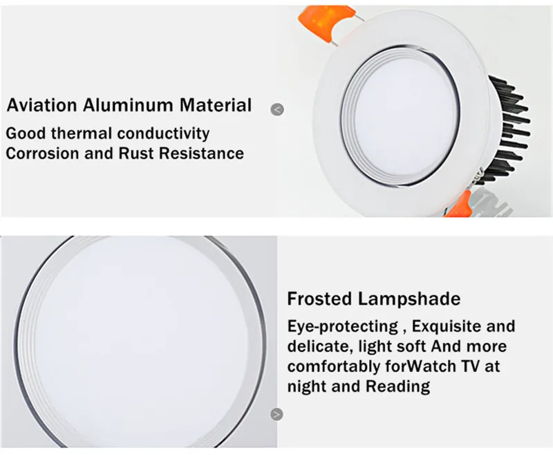 Параметры продуктаВход Напряжение: AC85-265V/110V/220V 50/60HzМощность: 5 Вт/7 Вт/9 Вт/12 Вт/15W18WРегулировка яркости: ДаИндекс цветопередачи (CRI):>Ra85Угол луча: 60 °Светодиодный чип: C0B чип (CREE)Световой поток: 95 ~ 110 лм/ВтТемпература: от-25 до 45 °Уровень защиты: IP52Цветовая температура: теплый белый:(2700K-3000K); Натуральный белый:(4000K-4200K); Холодный белый:(6000K-6500K)Срок службы: 50000 ~ 80000 часовОдобрено: CE/RoHS/FCC/3CГарантия: 3 годаМатериал: литье под давлением алюминий + линзыПроисхождение: Гуандун (Китай)Особенности продукта1. Светодиодный Потолочные светильники использовать постоянный Светодиодный источник питания привода (AC85-265V,AC110V,AC220V 50/60 Гц). Стабильная производительность, безопасность и надежность. Применяется во всех странах.2. Светодиодный потолочный светильник s, Защита окружающей среды, низкое энергопотребление, светоотдача и яркость освещения превосходят светодиодный светильник.3. Светодиодный потолочный светильник имеет защиту от излучения, функции защиты от тумана. Светильник мягкий, красивый внешний вид.4. Светодиодный драйвер, влагостойкий, изоляционный, высокотемпературный. Уровень безопасности IP525. Защита окружающей среды приятная на ощупь полупроводниковый светильник источник света, светильник, приятный цвет есть способствует Китайской Народной защита зрения и здоровья. Нет излучения, Нет ультрафиолетового излучения, нет стробоскопического излучения.6. CCC, CE, FCC, UL, RoHS, SAA SGS Сертификация (светодиодный) продукции, для вашей гарантированной безопасности, чтобы избежать электрического удара и пожарной опасности. 7. Энергосбережение на 45-70%, чем флуоресцентная лампа/галогенная лампа/лампа накаливания и длительный срок службы:>80000 ч.Посылка1 шт. светодиодный светильник1 шт. светодиодный драйвер (Диммируемый или не Диммируемый для вашего выбора)Наш Контроль качества:* Все продукты должны пройти пять проверок до производственного процесса.* Полная проверка сырья перед производством.