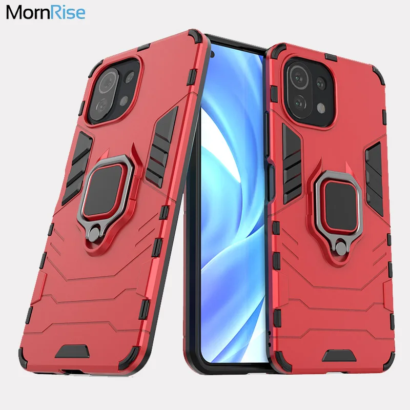 Жесткий Гибридный бронированный чехол для Xiaomi MI 11 lite, чехол с магнитным кольцом на палец, подставкой, Защитные чехлы для телефонов, чехлы