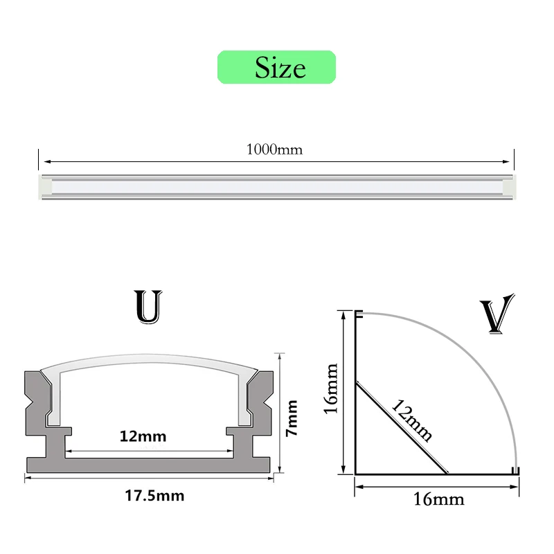 2835 супер яркий алюминиевый профиль светодиодный свет-10-20 шт./лот, 100 см/шт. * Размер: v-образная форма l1000xw16xh16 мм* Размер: u-образный l1000xw17.5xh7мм * Материал: алюминиевый корпус + крышка ПК + Диодная лента 2835