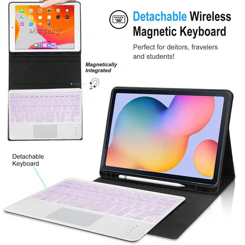 Корейский чехол с тачпадом и подсветкой для клавиатуры с испанской и русской раскладкой для Samsung Galaxy Tab S6 lite, P610, P615, чехол со слотом для клавиатуры