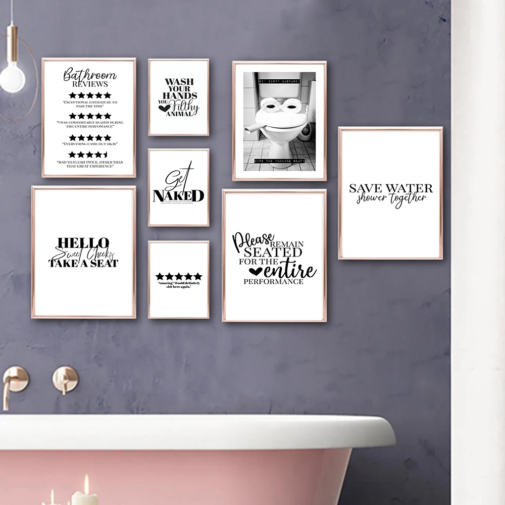 Животные в туалете постер забавные правила ванной знак скандинавский Мойте руки печать Humour картинки получить голый ванной домашний декор