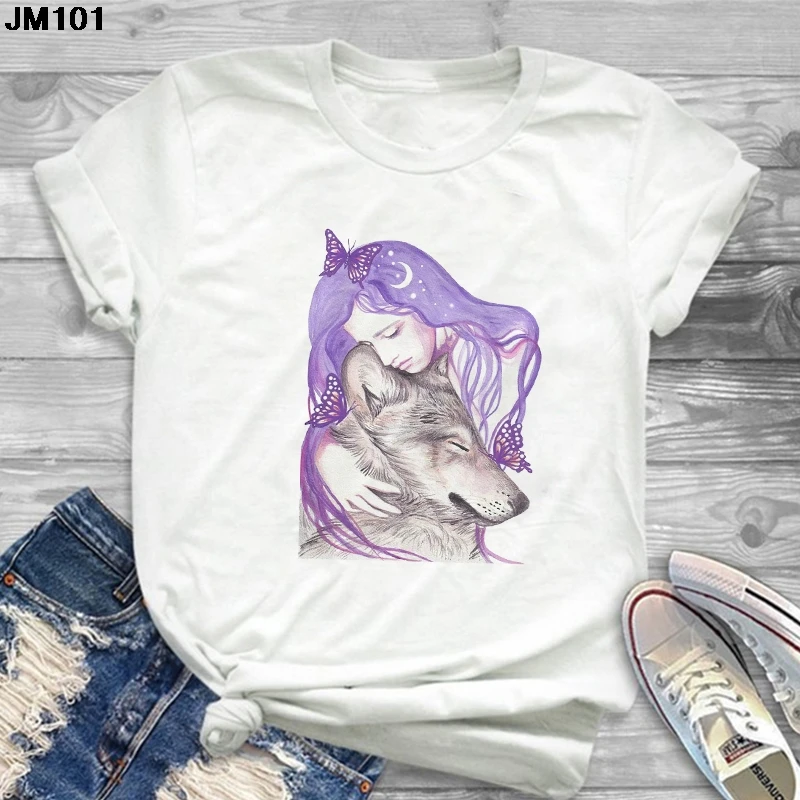 Футболка женская с принтом в виде животных, летняя, с круглым вырезом и коротким рукавом