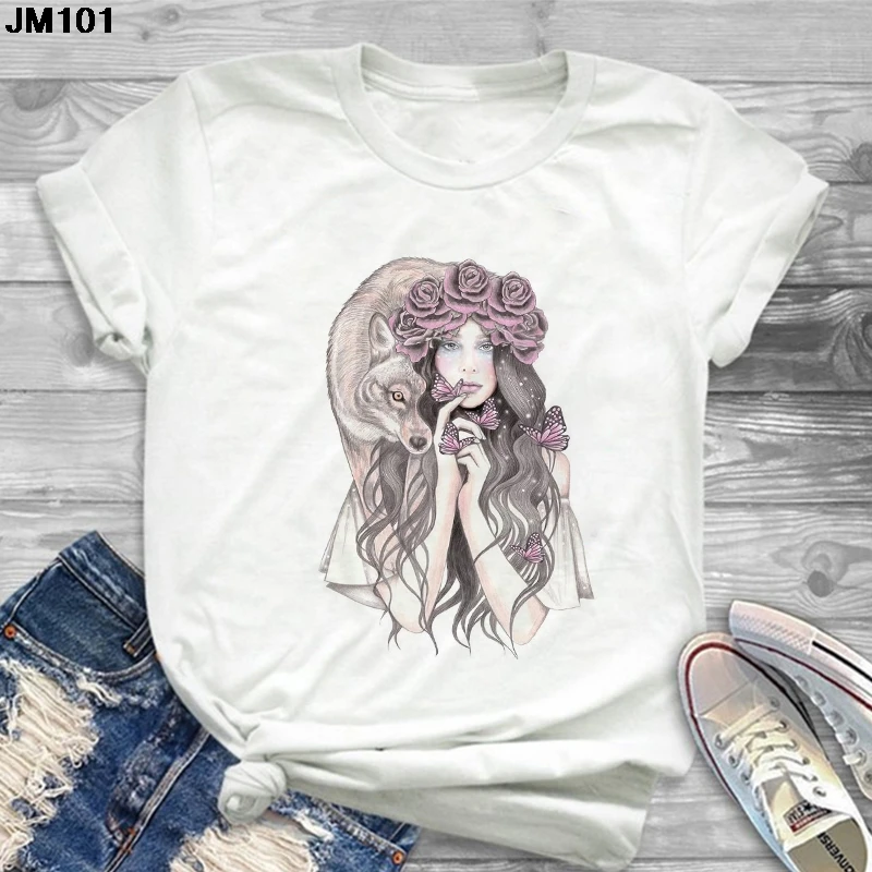Женская белая футболка в стиле Харадзюку, футболка с принтом красив...