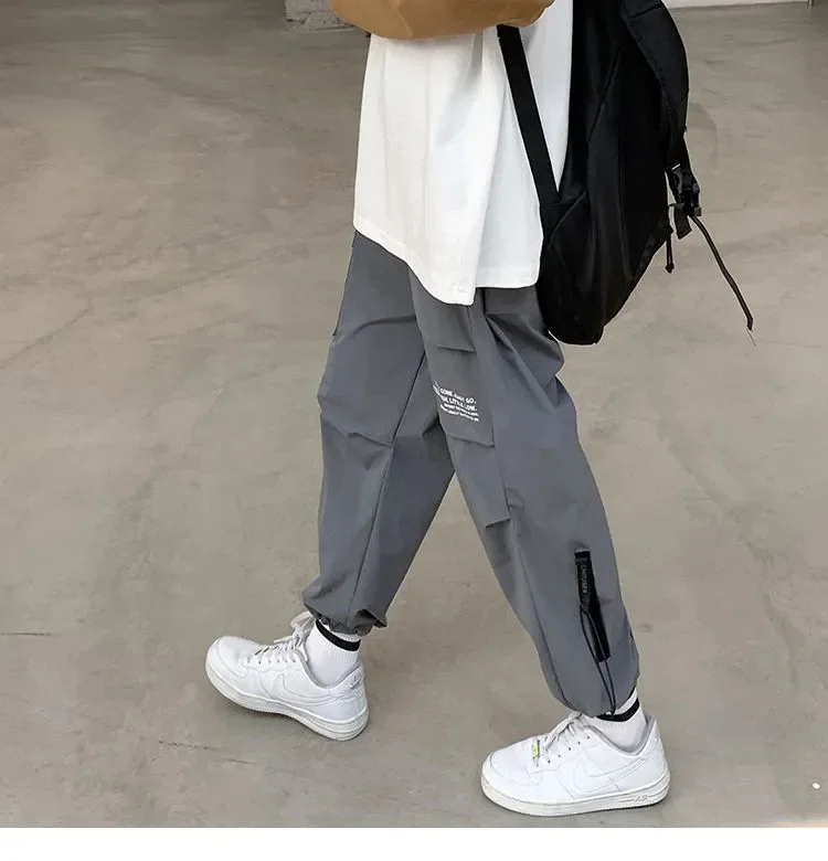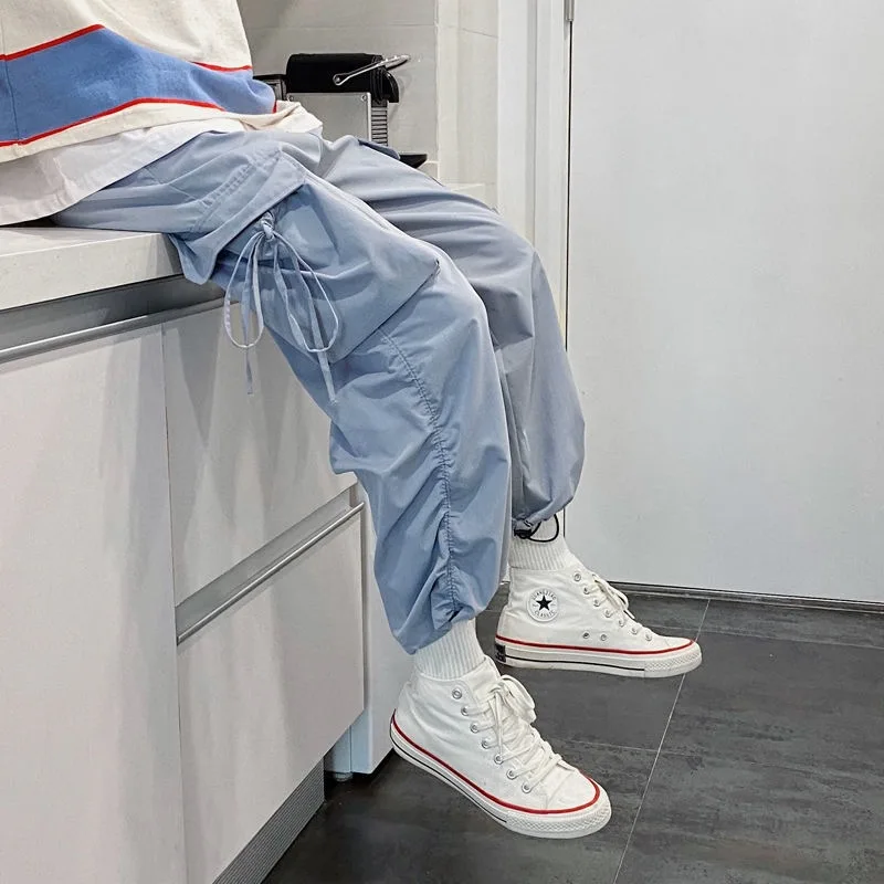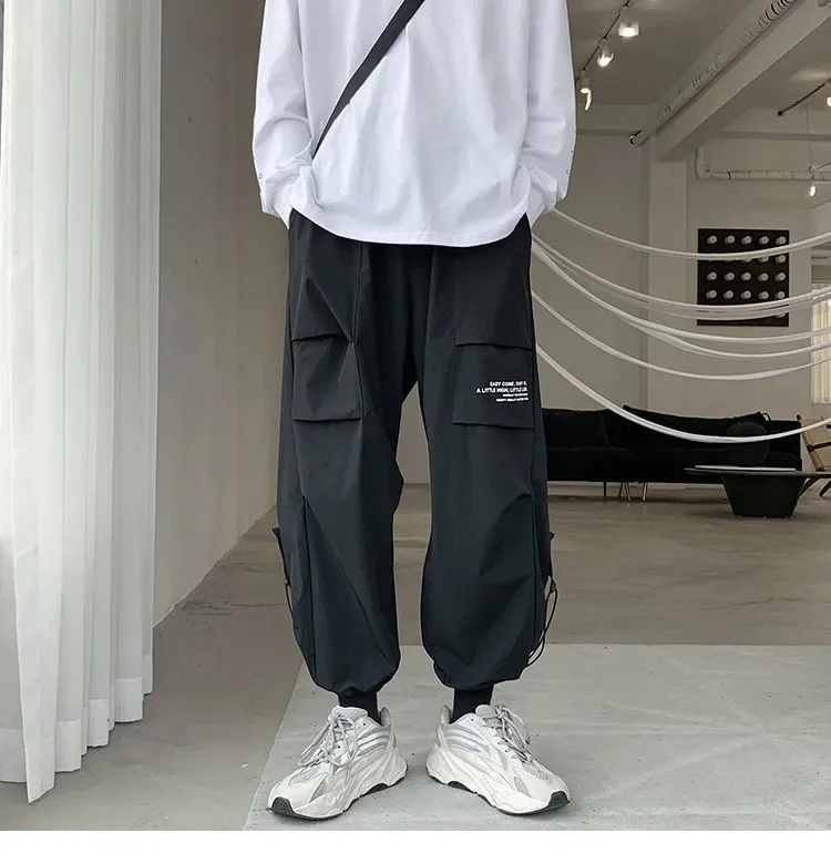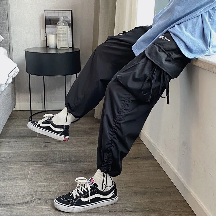Джоггеры-шаровары с лентами, мужские брюки-карго, уличная одежда 20...