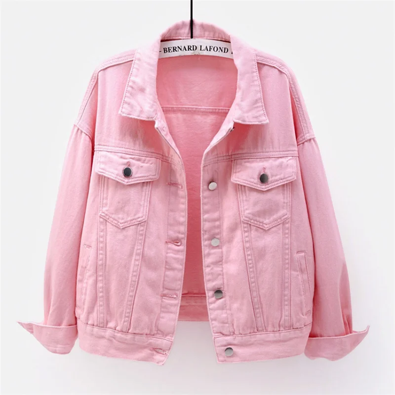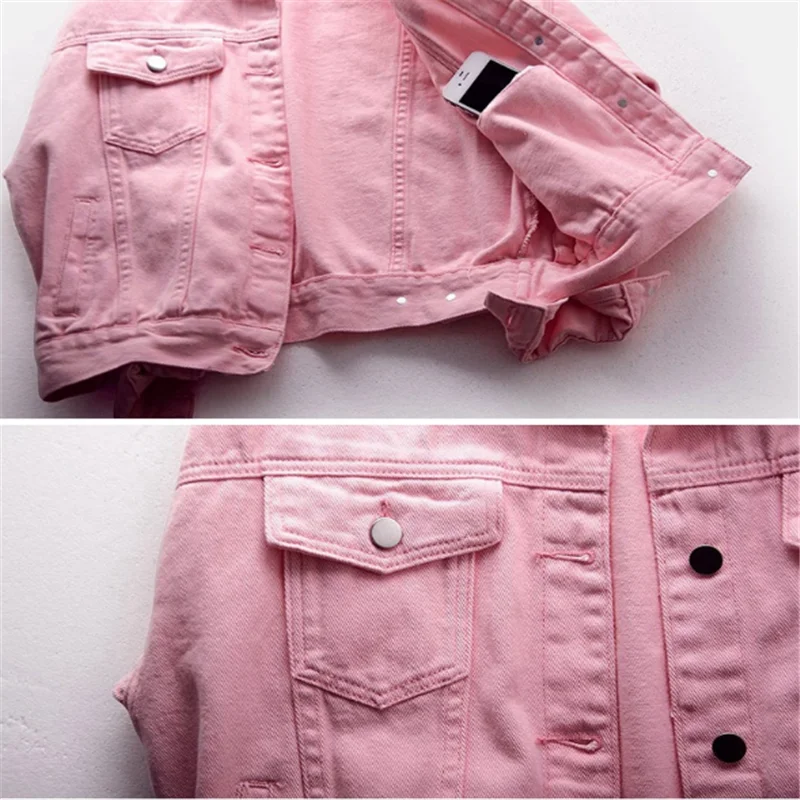 Женская джинсовая куртка, короткая весенне-осенняя куртка, розовые ...