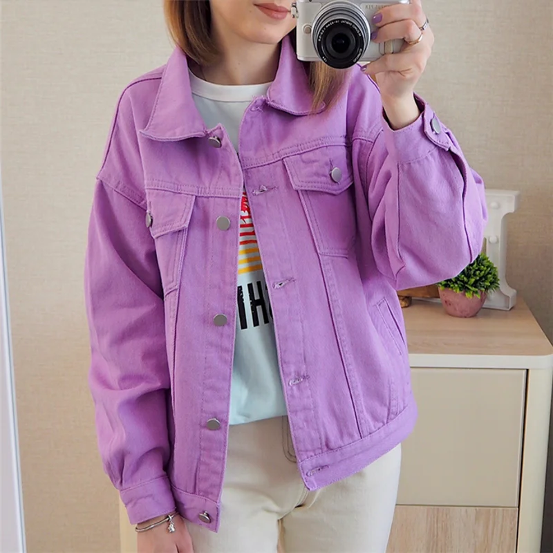 Женская джинсовая куртка, короткая джинсовая куртка фиолетового, же...