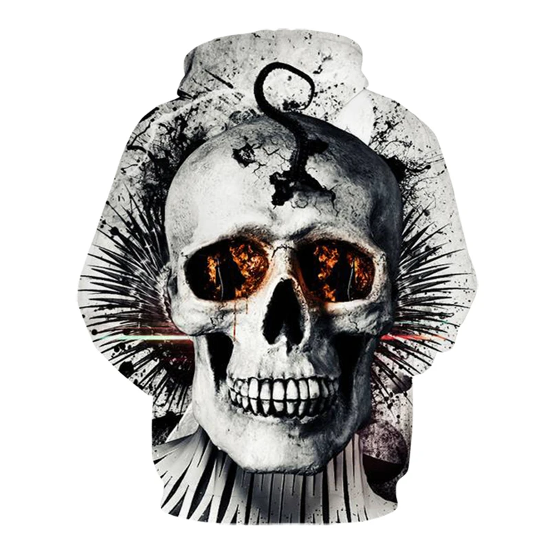 Мужская толстовка с капюшоном и 3D-принтом черепа, в стиле хип-хоп