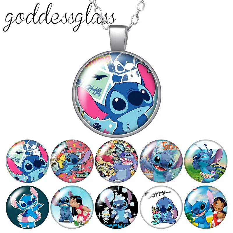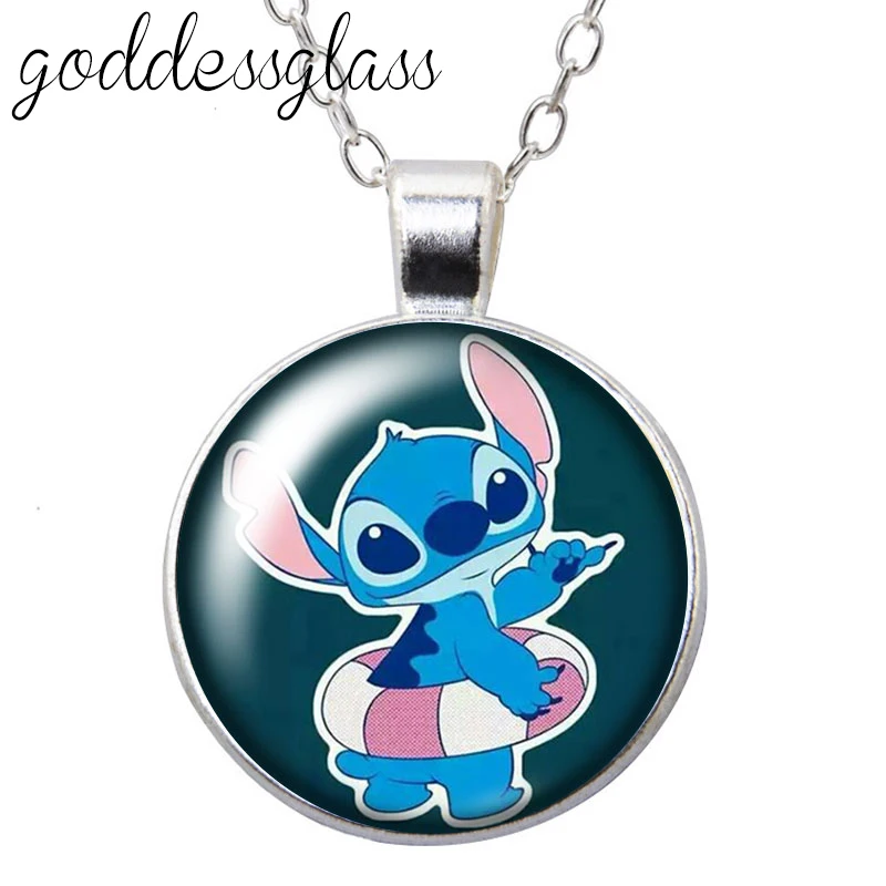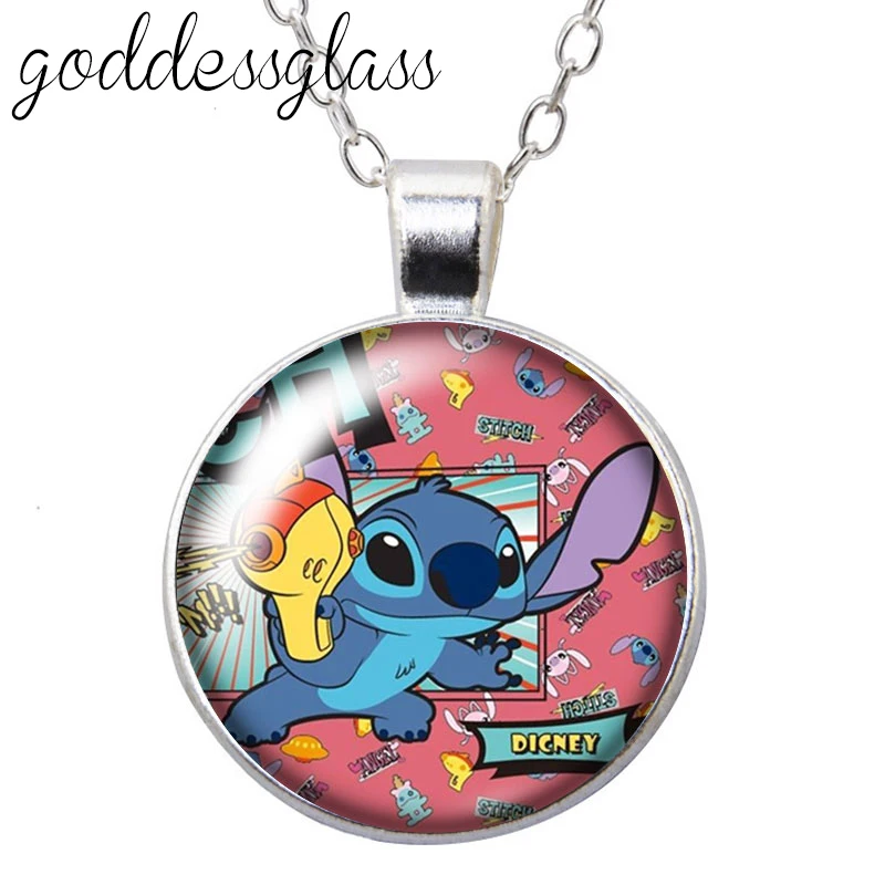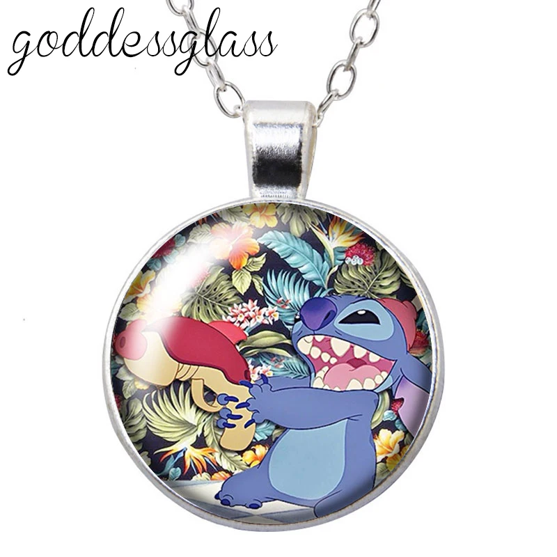Disney милый Лило и Стич ангел круглый стеклянный кабошон посеребренныйхрустальный кулон ожерелье ювелирные изделия подарок