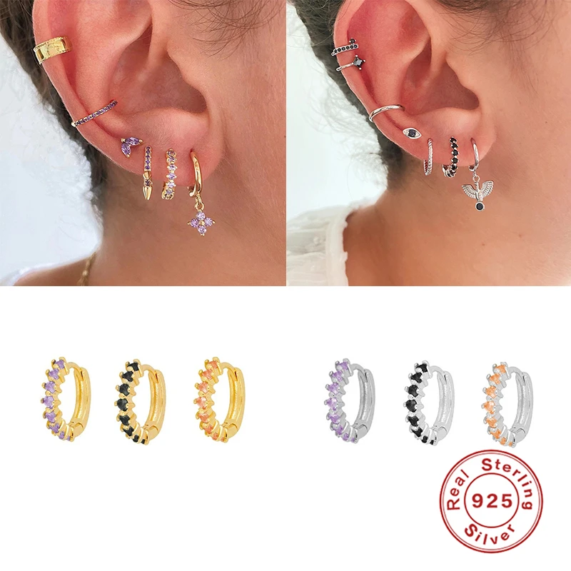 Aide 925 стерлингового серебра 9 мм красочные серьги-кольца с цирко...