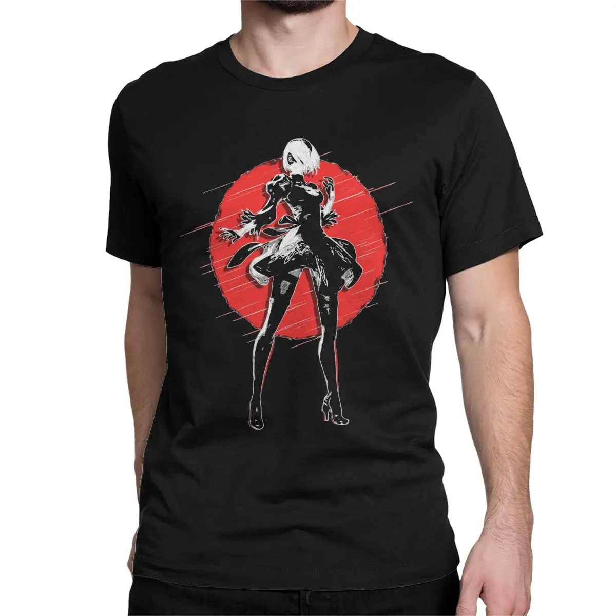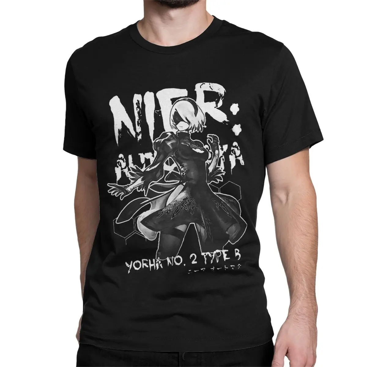 Футболка мужская с японскими чернилами из чистого хлопка, забавная тенниска с коротким рукавом, футболки с округлым вырезом, подарок на день рождения, NieR Automata 2B Game Waifu