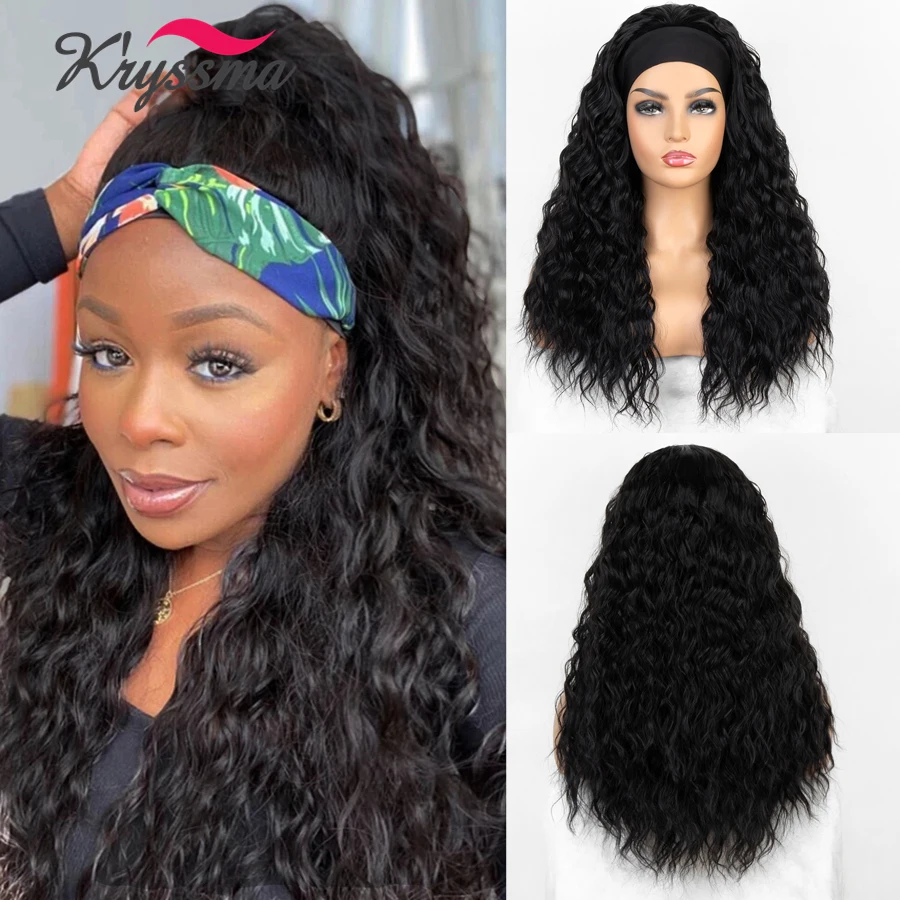 Парик с головной повязкой Длинные Синтетические вьющиеся парики для чернокожих женщин, парики машинной работы, натуральные волнистые парики