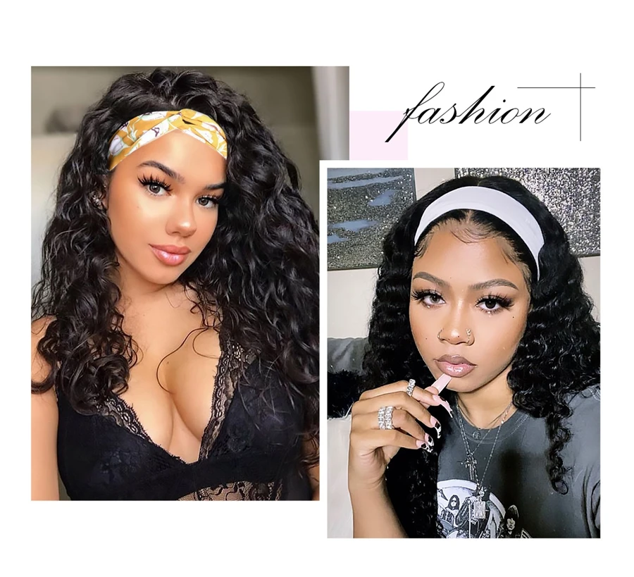 None Lace WigHeadband Water Wave Curly Synthetic Wig For Women
