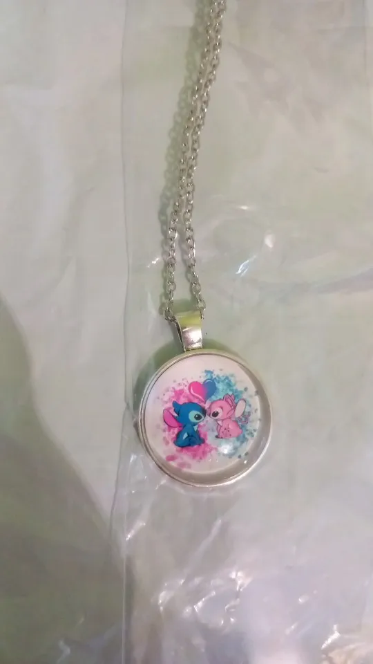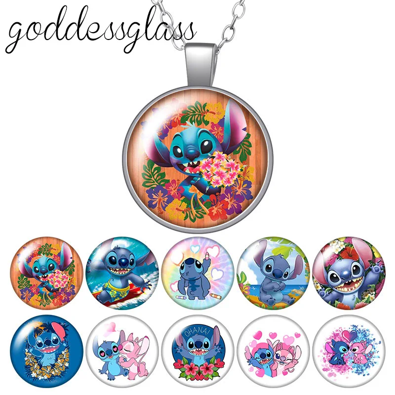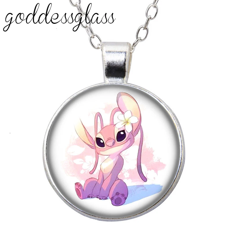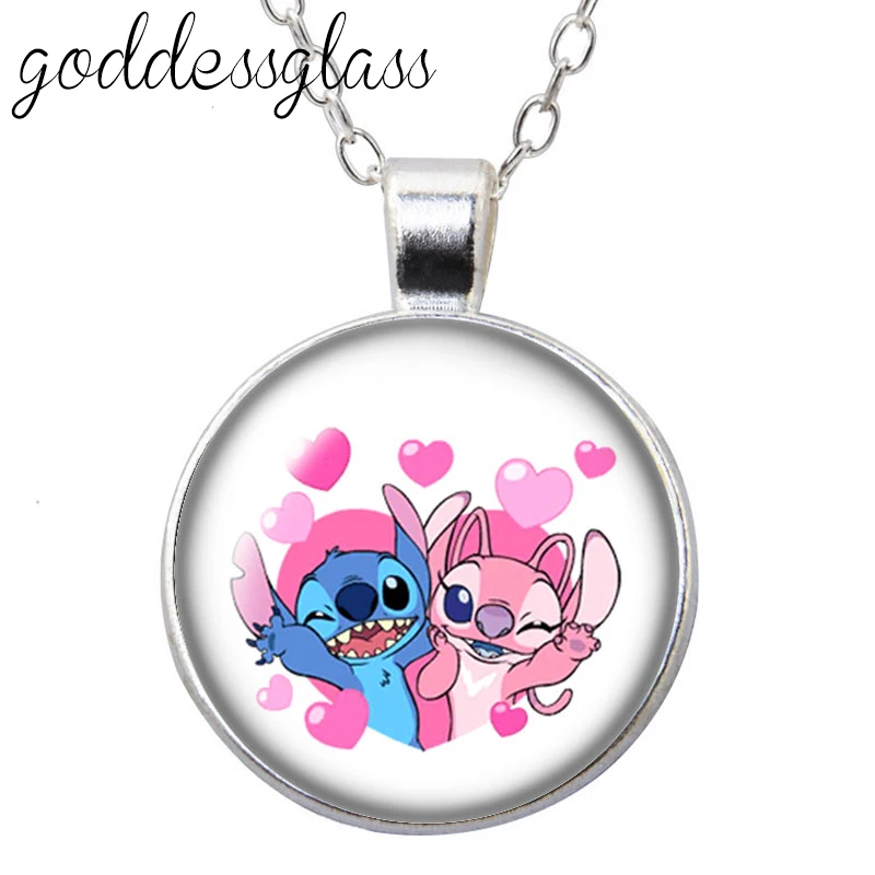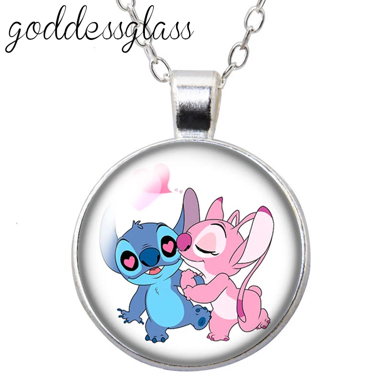 Disney милые Лило и Стич ангел круглые стеклянные кабошоны разрисованные изделия из стекла с серебряным покрытиемКристалл ожерелья с подвесками, ювелирное изделие, подарок