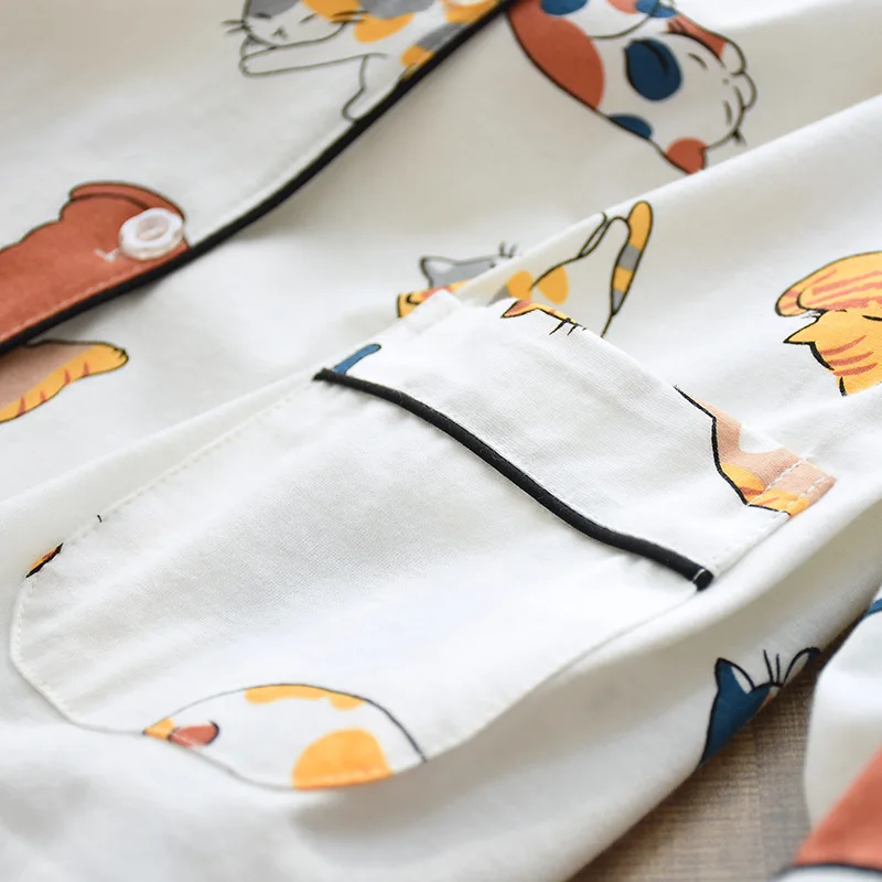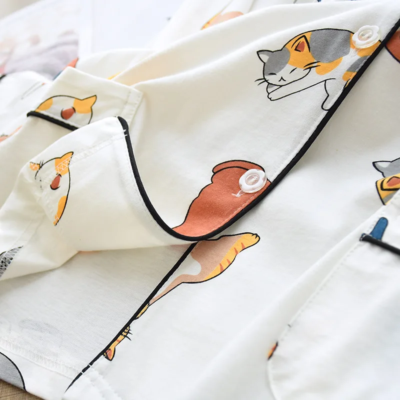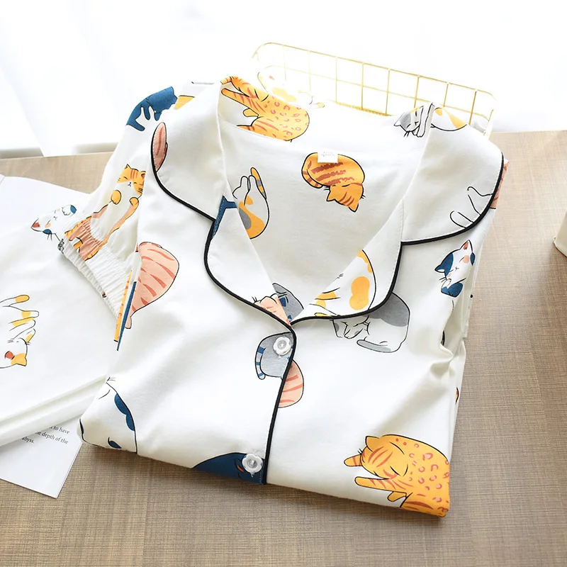 Женская пижама из 100% хлопка, домашняя одежда с милым мультяшным п...
