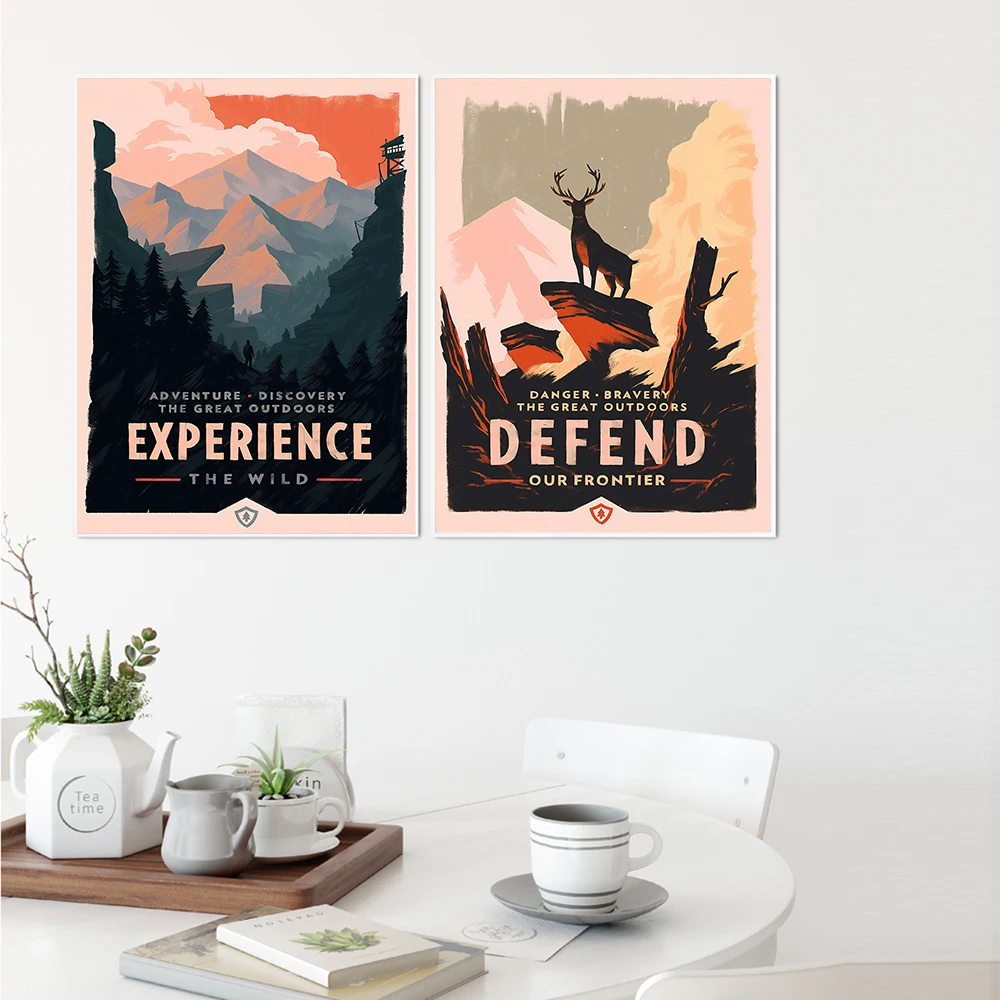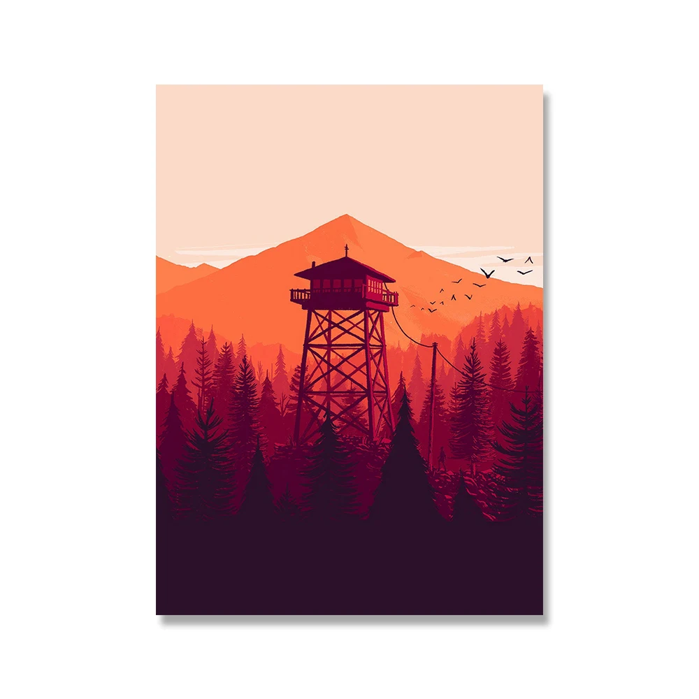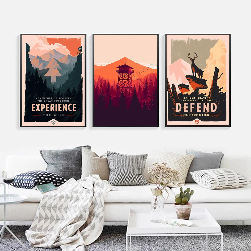 Firewatch видеоигры горы олень минимализм лес природа дикий огонь настенное искусство холст игры постер HD печать домашний декор живопись
