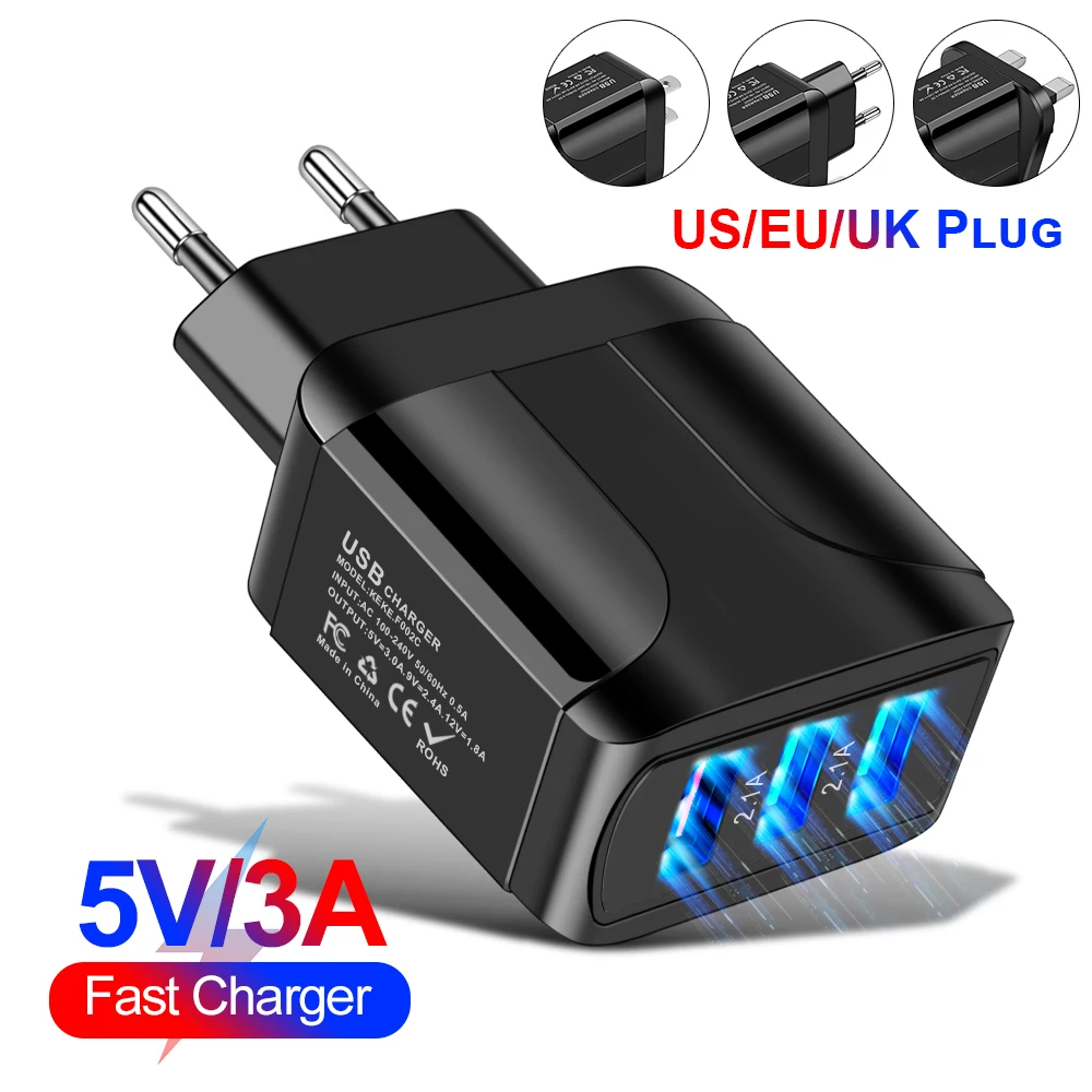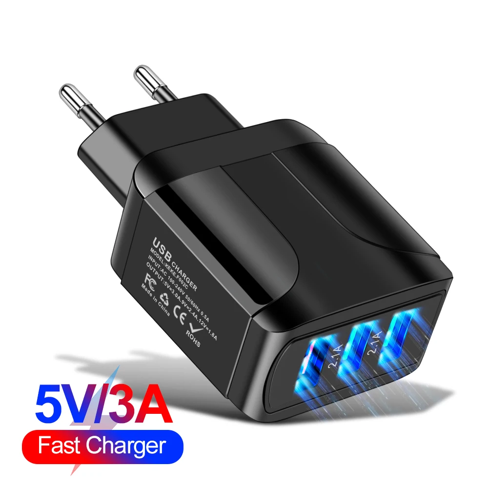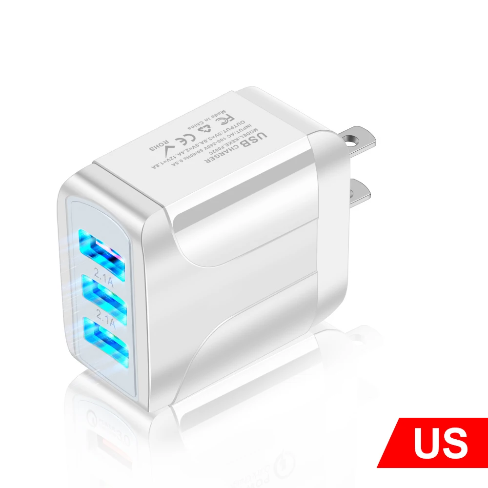 Сетевое зарядное устройство с 3 USB-портами и светодиодной подсветкой, 3 А