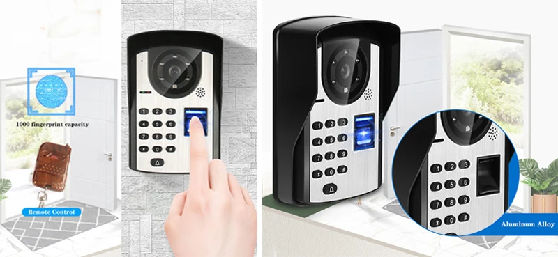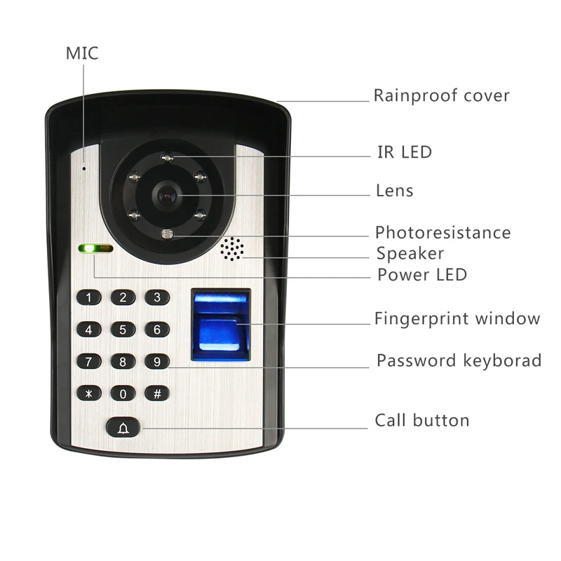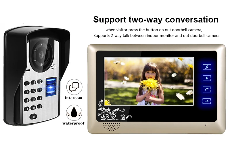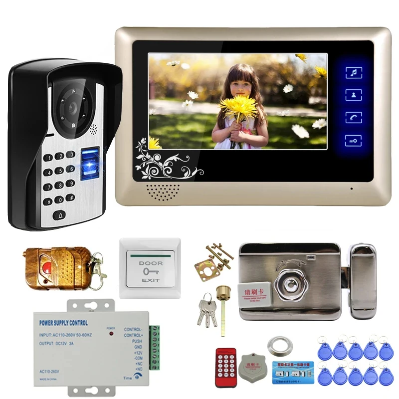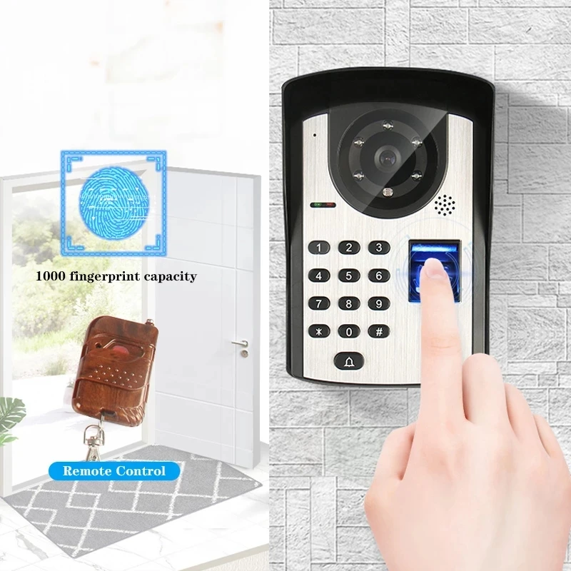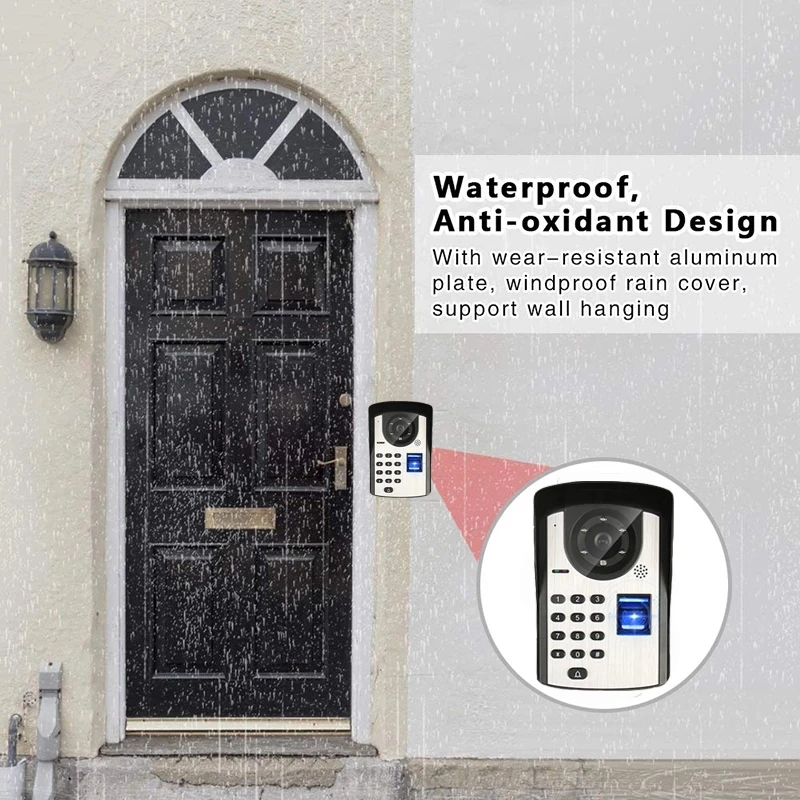 Видеодомофон с отпечатком пальца, дверной звонок, водонепроницаемый домофон, проводной 7-дюймовый монитор, разговорная разблокировка, 420TVL, безопасность дома и офиса
