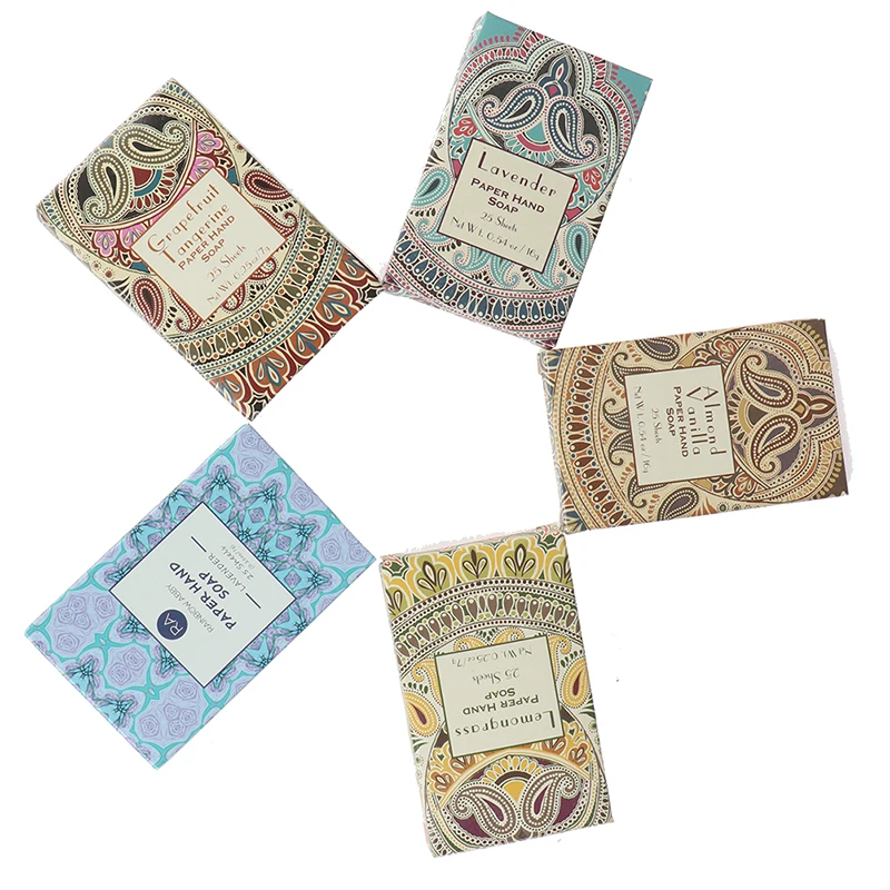 25 шт/коробка бумажное мыло для мытья рук портативное мыло для мытья рук s ароматизированное мыло для мытья рук и ванны для путешествий ароматизированное небольшое мыло