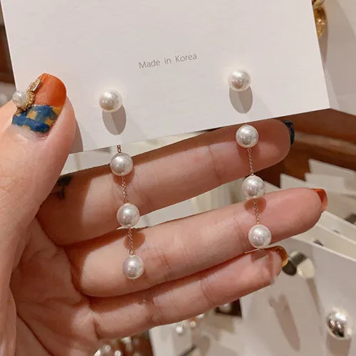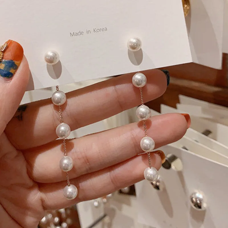 Женские длинные серьги с искусственным жемчугом, свадебные серьги с Белым Круглым жемчугом, ювелирные изделия в Корейском стиле, 2021