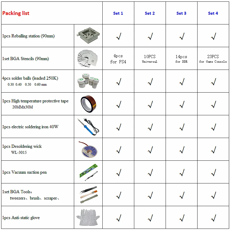 90 мм BGA трафареты для реболлинга зажим + шарики для припоя комплект станции для реболла + фитиль для распайки + паяльник для ремонта SMT