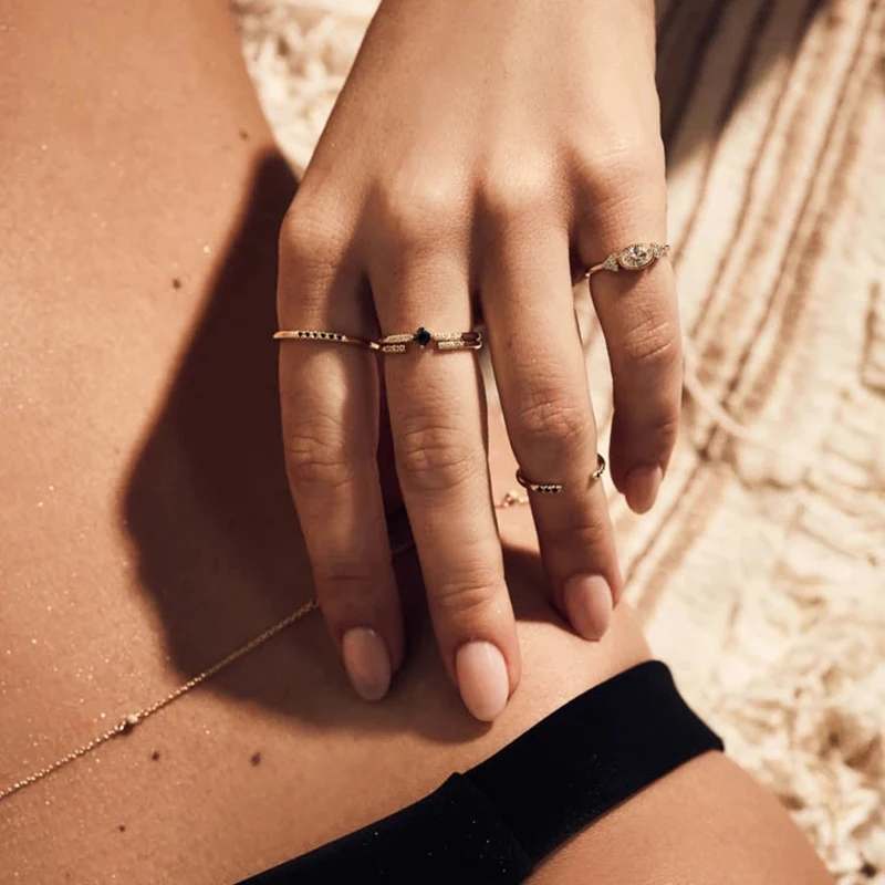 Women JewelryMinimalist Thin Circle Gem Rings Jewelry Carving S925