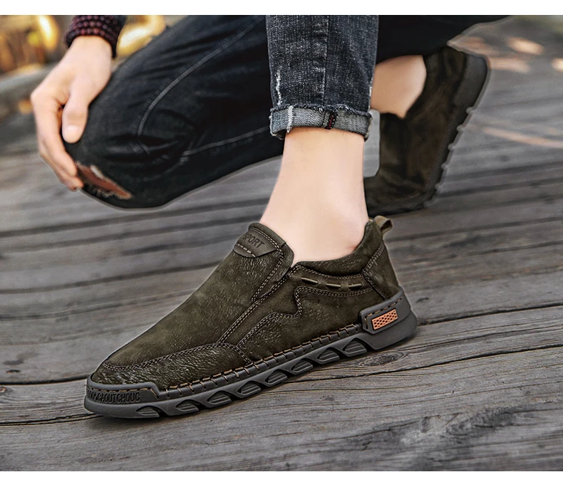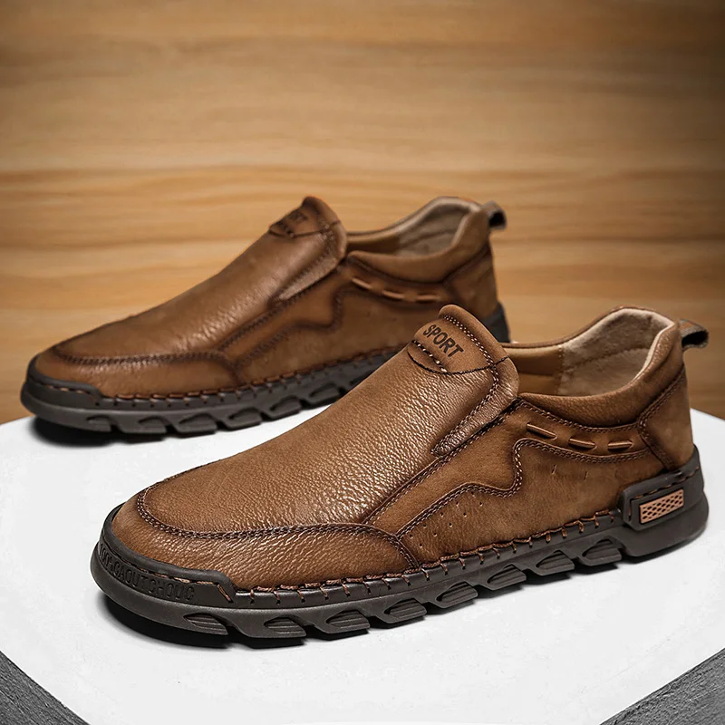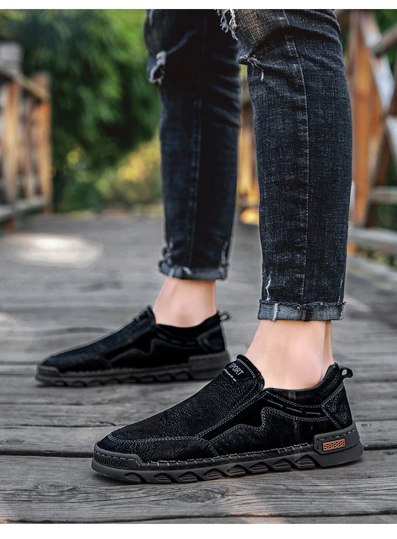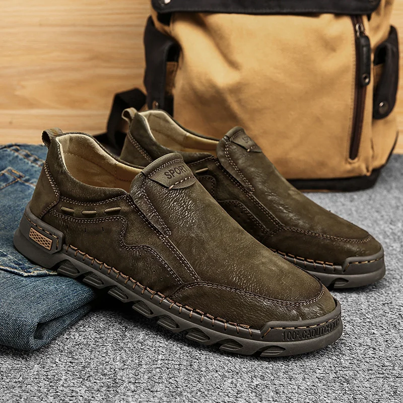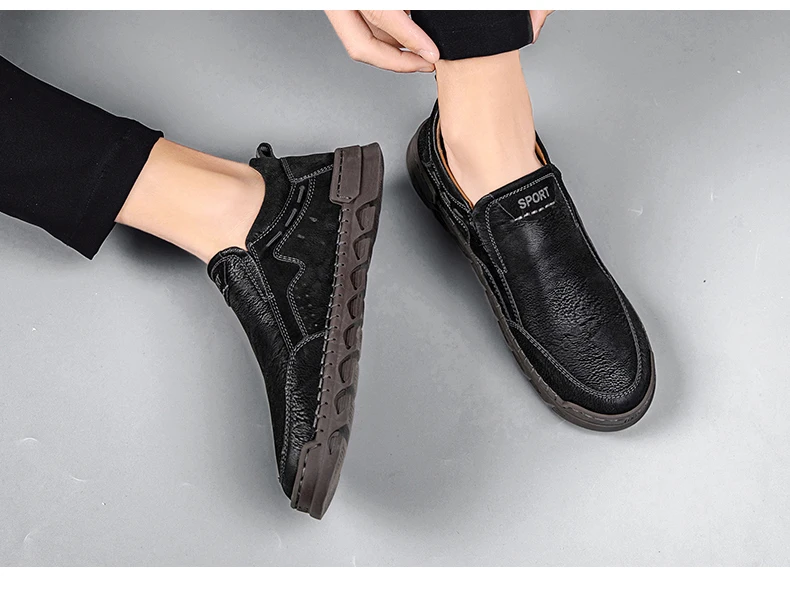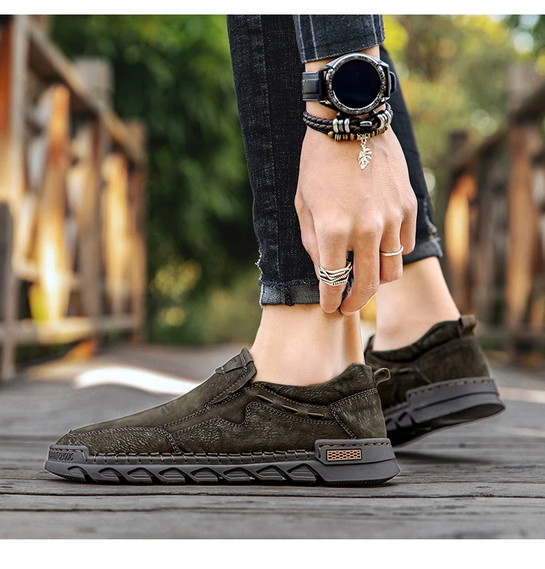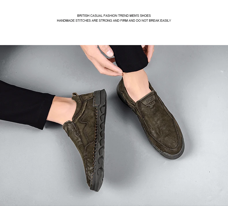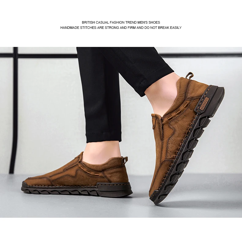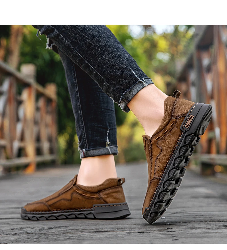 Мужские мокасины ручной работы, из натуральной кожи, на плоской подошве