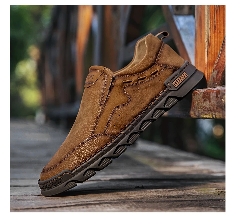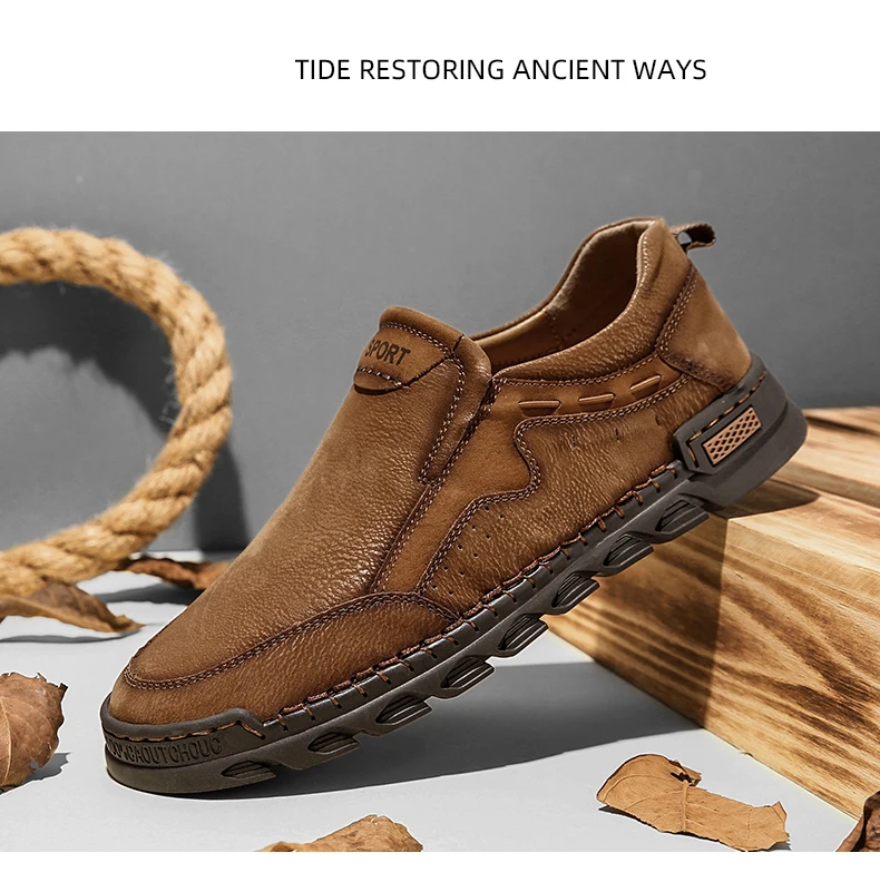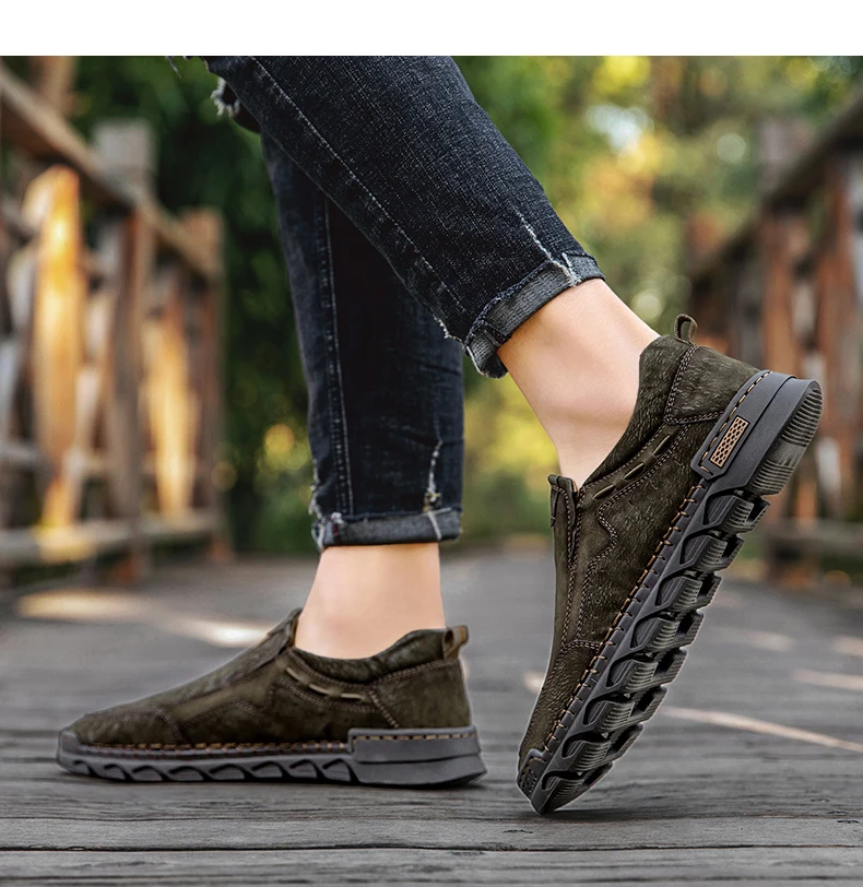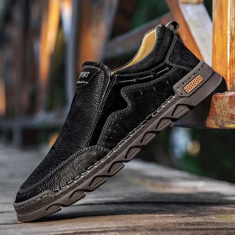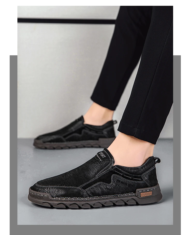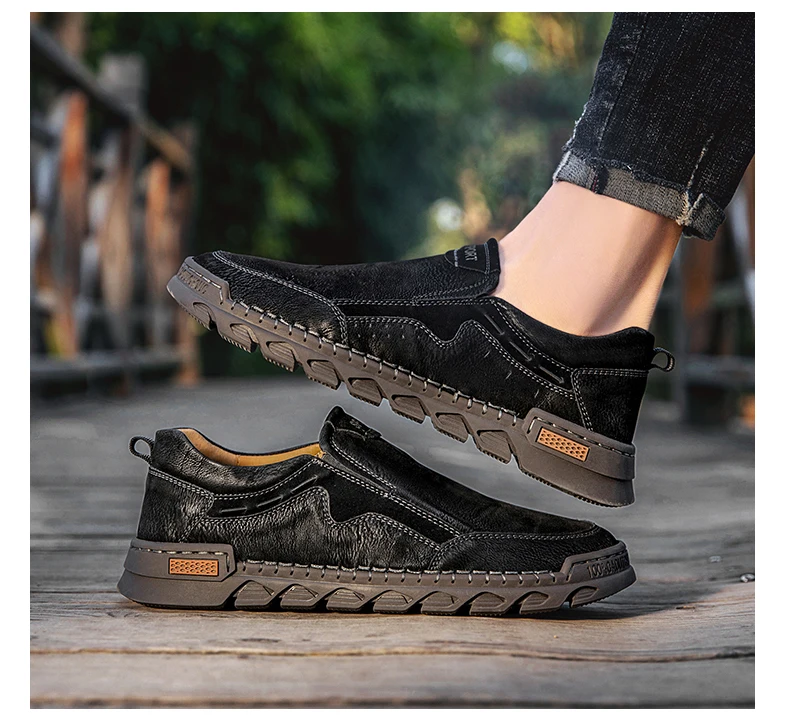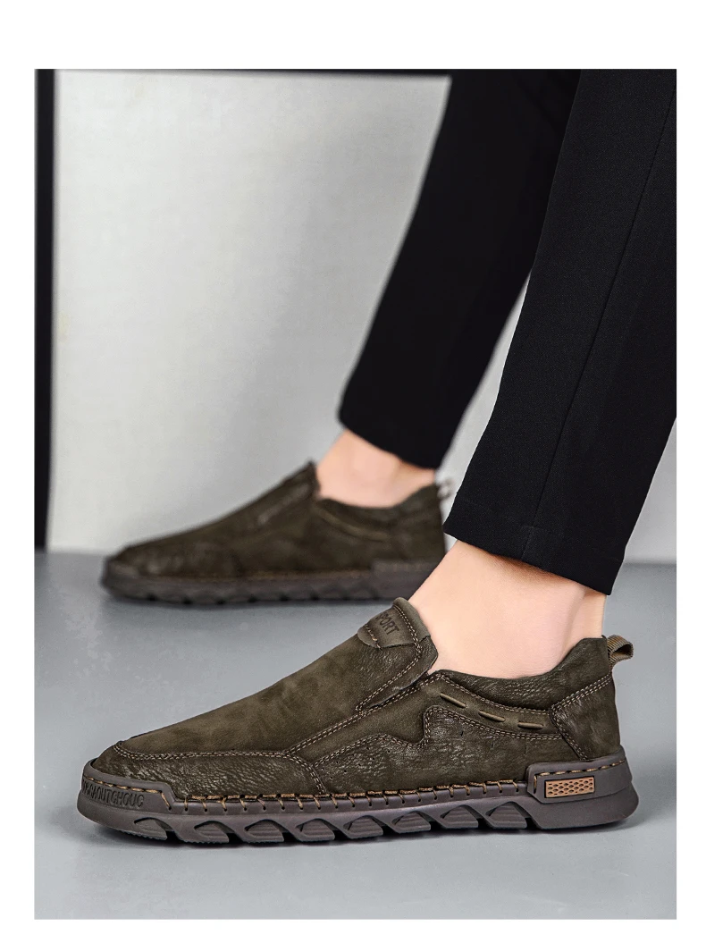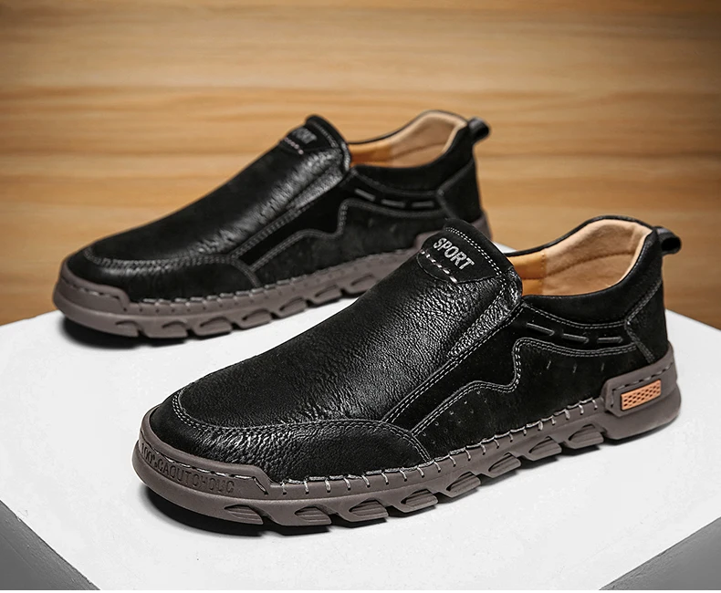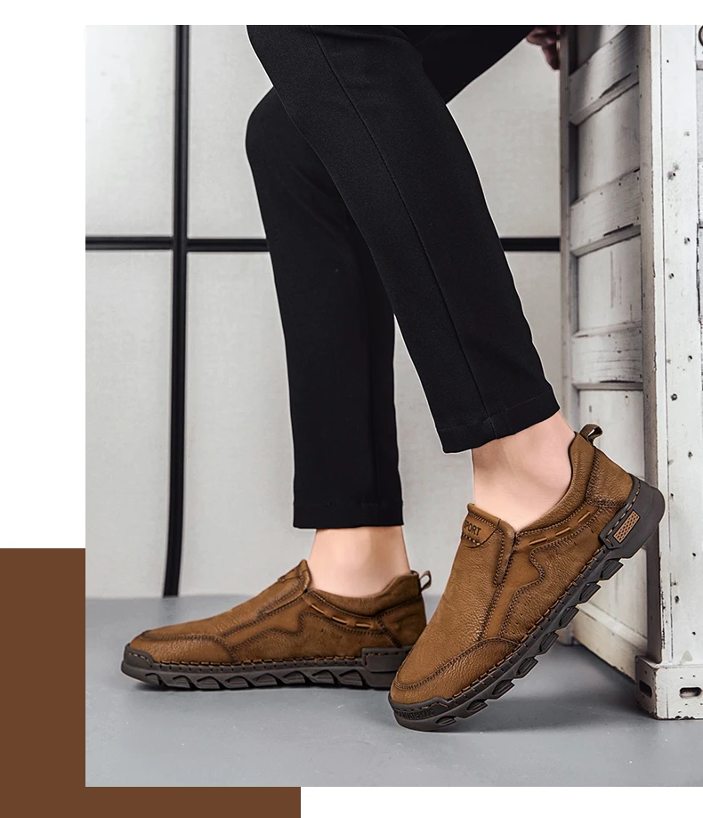 Мужские мокасины ручной работы, из натуральной кожи, на плоской подошве