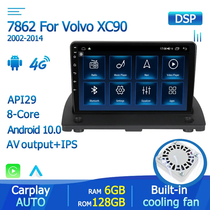 2 din Android 10 8 ядер автомобильный радиоприемник GPS RDS DSP мультимедийный плеер для Volvo XC90 2004 2005 2006 2007 2008 2009 2010 -2014 SWC вентилятор