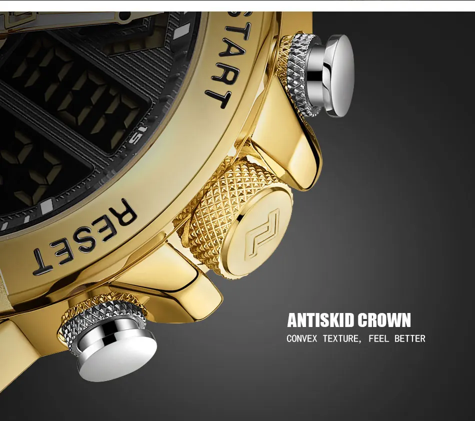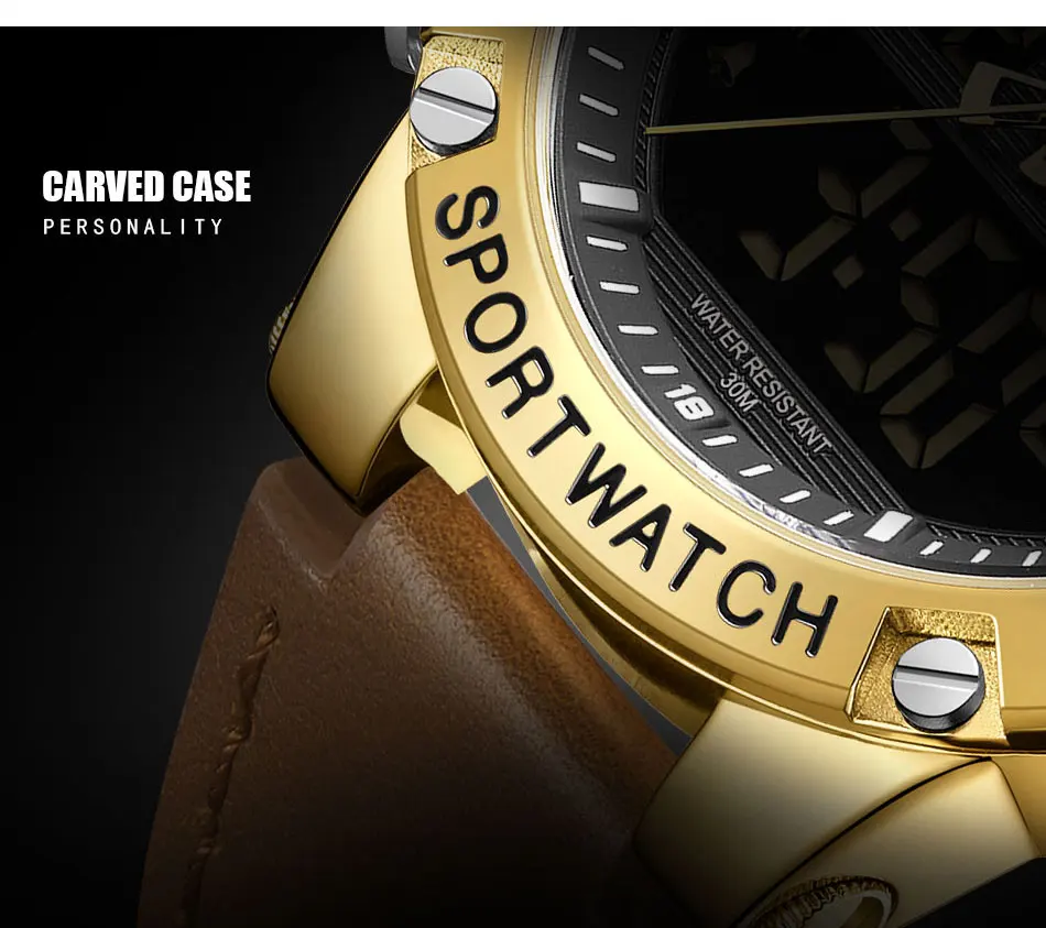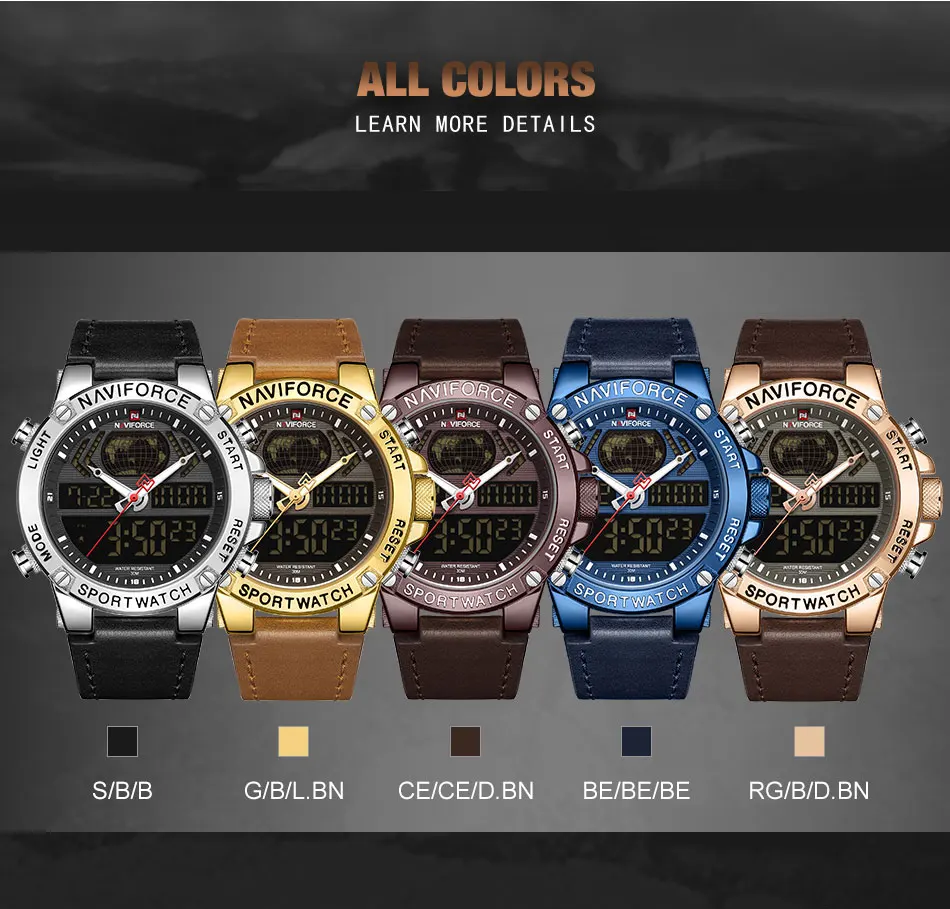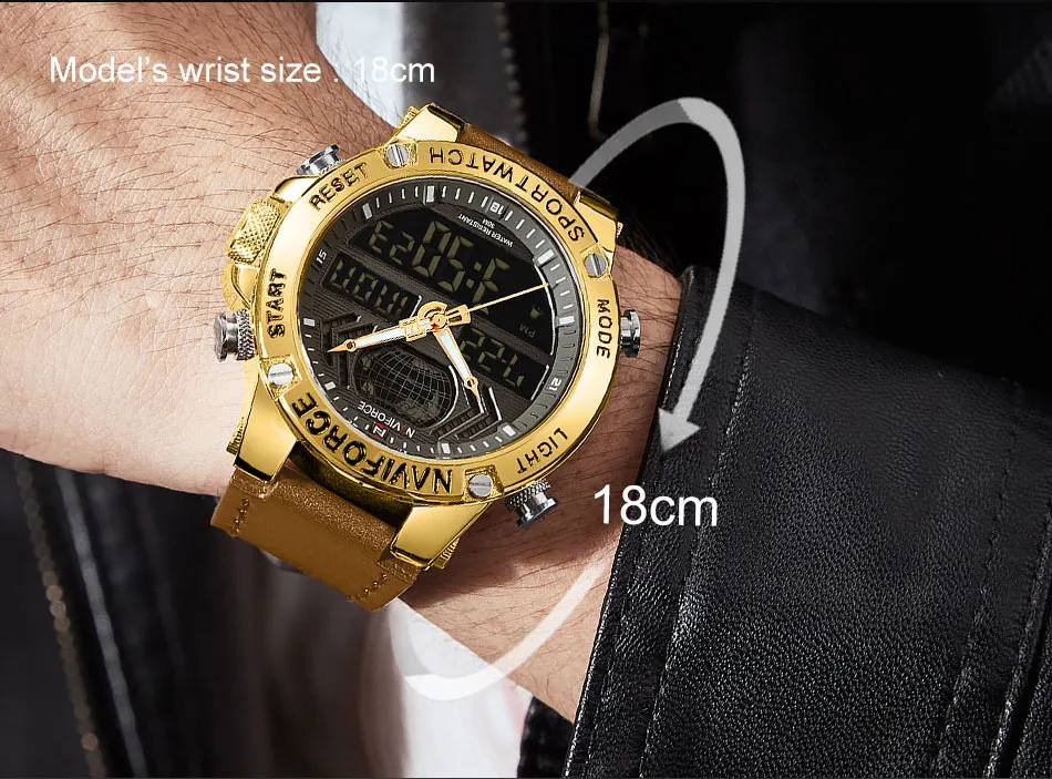Модель: NAVIFORCE NF9164NAVIFORCE Роскошные мужские часы с розовым золотом спортивные светодиодные цифровые кварцевые часы военные кожаные водонепроницаемые часы мужские часы Relogio Masculino 2020