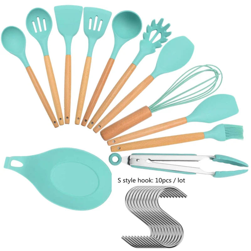 Набор силиконовых кухонных принадлежностей из 11 предметов с деревя...