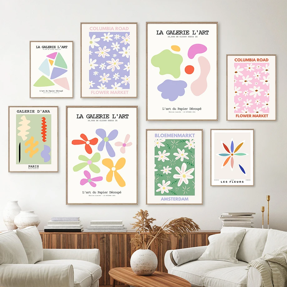 Абстрактные цветные блоки цветы галерея Ретро настенная Картина на холсте скандинавские постеры и принты настенные картины для декора гостиной