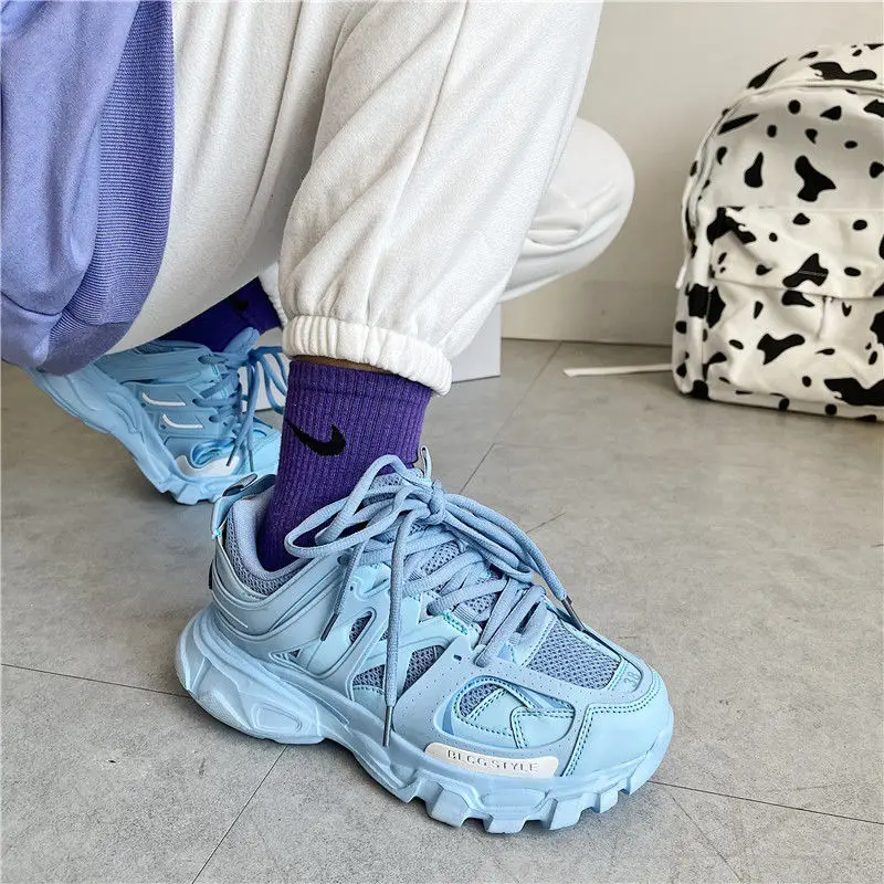 Брендовые дизайнерские женские кроссовки, новинка 2021, модные небесно-голубые женские массивные кроссовки, милые розовые кроссовки для папы, модная повседневная обувь для девушек