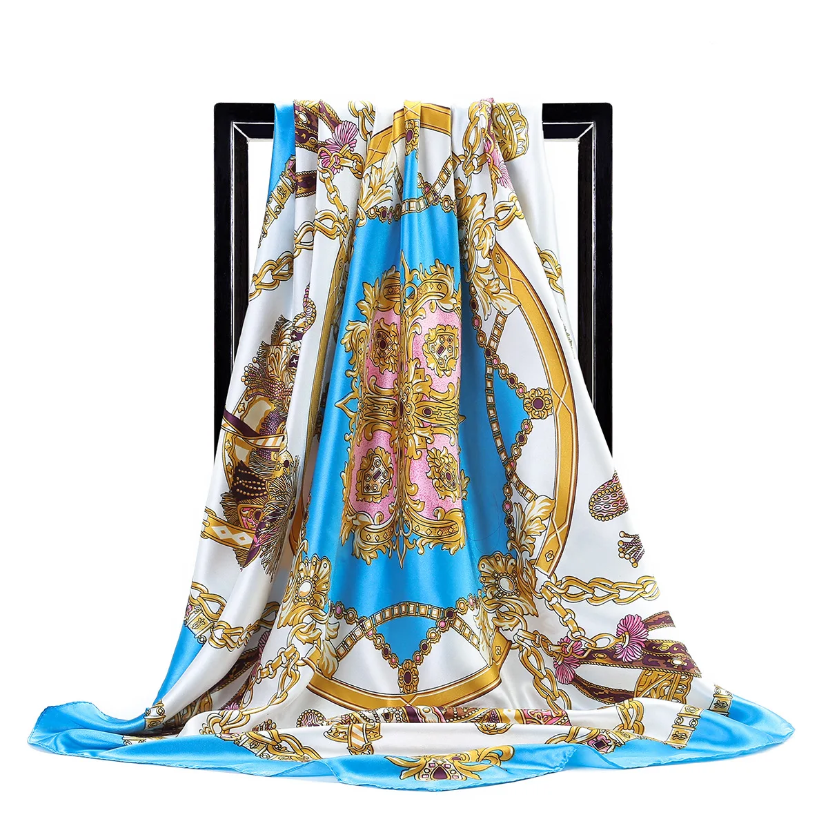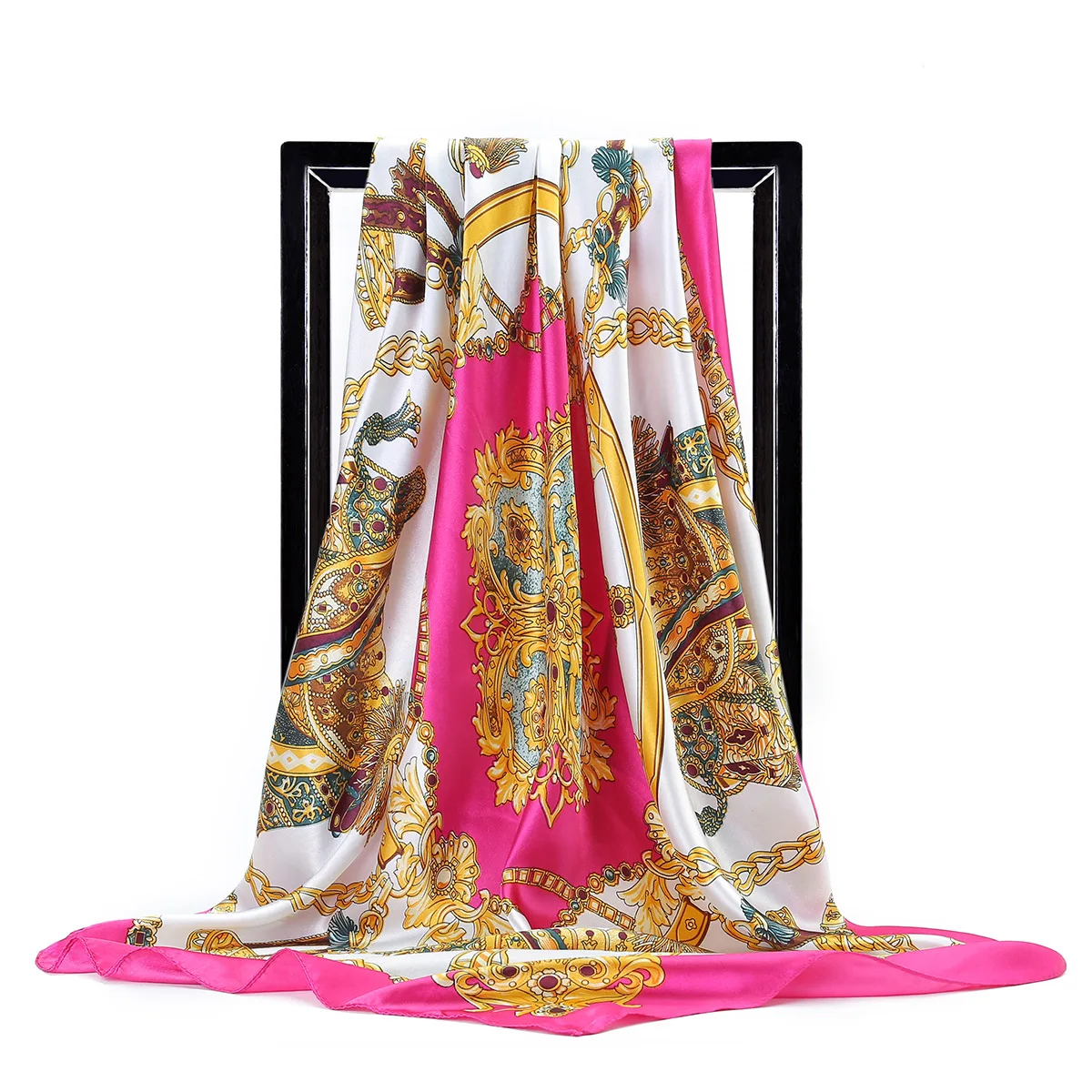 Шелковый Атласный квадратный шарф 90*90 см, Шейная сумка для завязы...