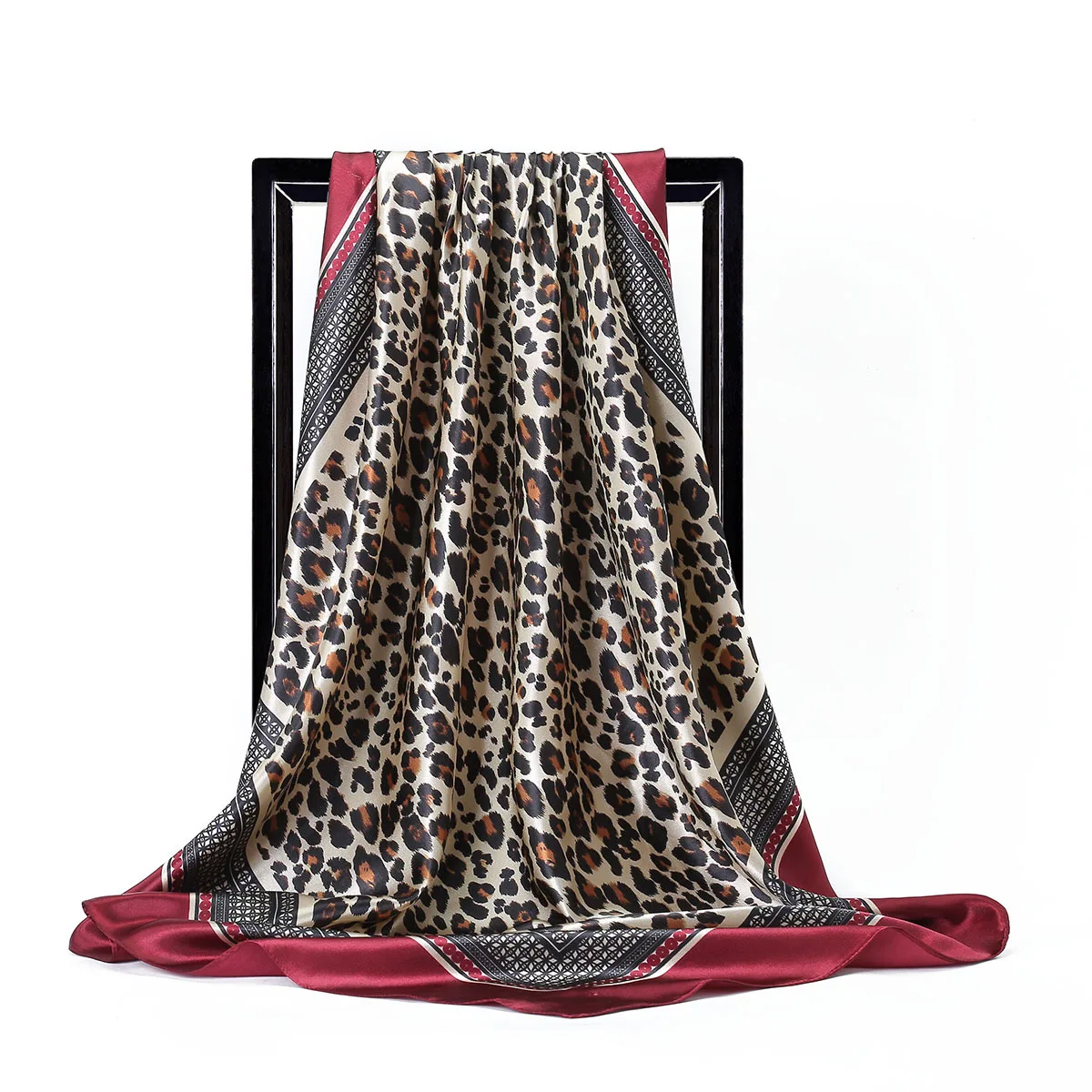 Платок женский квадратный с леопардовым принтом, бандана из сатина ...