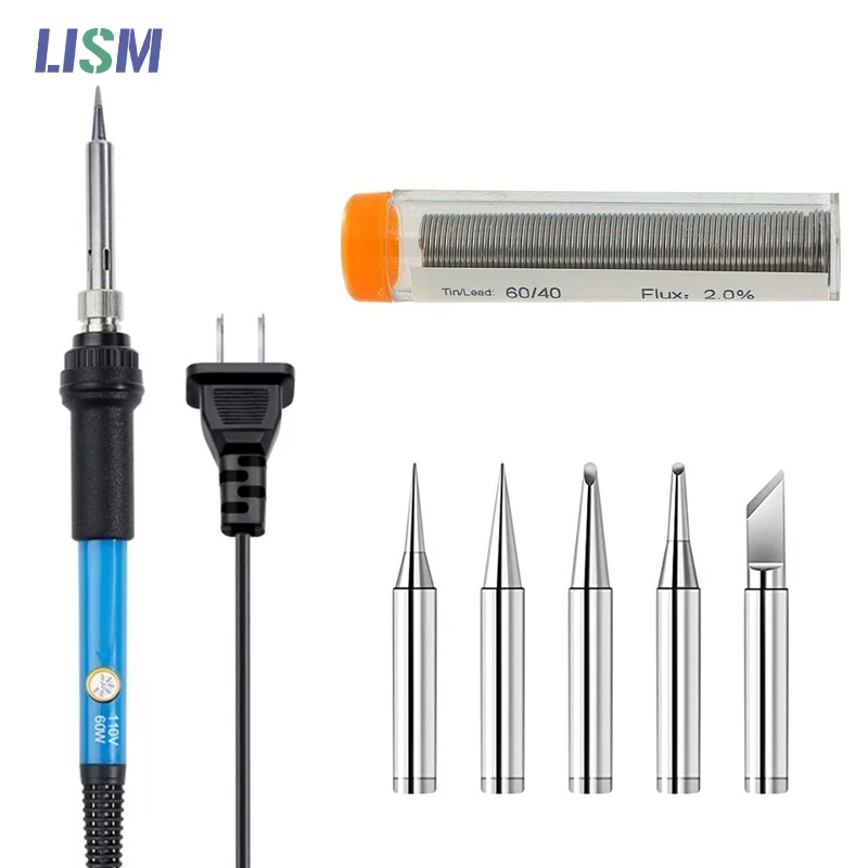 Электрический паяльник, паяльная ручка с регулируемой температурой, 60 Вт, с наконечниками паяльника, сварочные провода