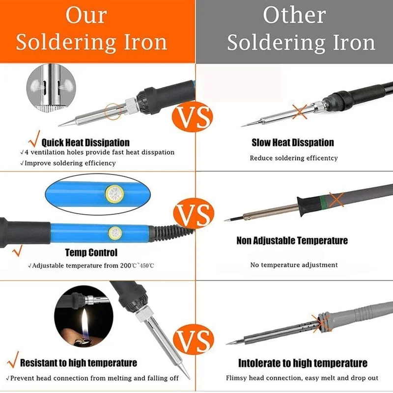 Эта компактная станция идеально подходит для профессионального использования. Пайка может быть выполнена и отрегулирована от ручки управления от 200 °C - 450 °C. Сменные железные наконечники доступны для того, чтобы паяльная станция была превосходной для электронного и электрического использования. Этот профессиональный паяльный инструмент отлично подходит для бессвинцовых паяльных полупроводников с регулируемым температурным контролем паяльников: 200-450 ° C. Паяльник для подключения к Длина: 18,5 см кабель Длина: 143 см рабочее Напряжение: 220V 50HZ (штепсельная Вилка европейского стандарта 220 В, штепсельная вилка стандарта США 110V) Мощность: 60 Вт