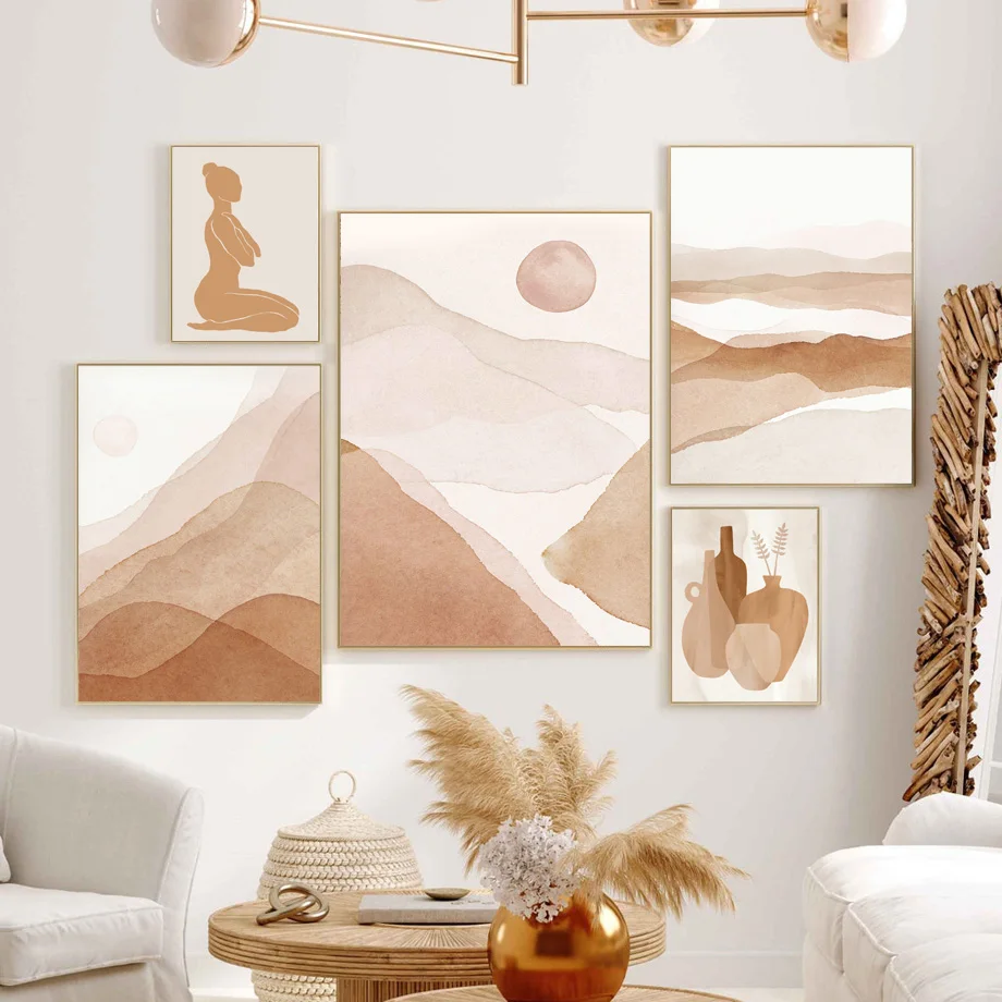 Река Луна Цветочная ваза абстрактные линии богомия настенная живопись на холсте постеры и принты настенные картины для декора гостиной