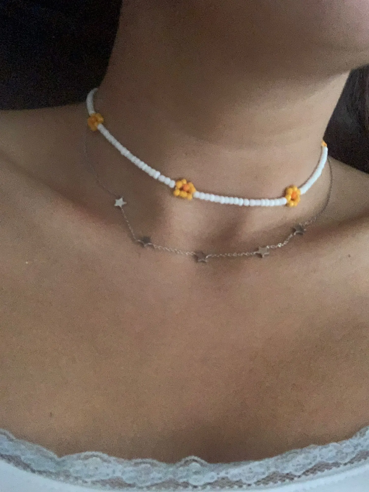 Ожерелье-чокер с цветами маргаритки и акриловыми бусинами