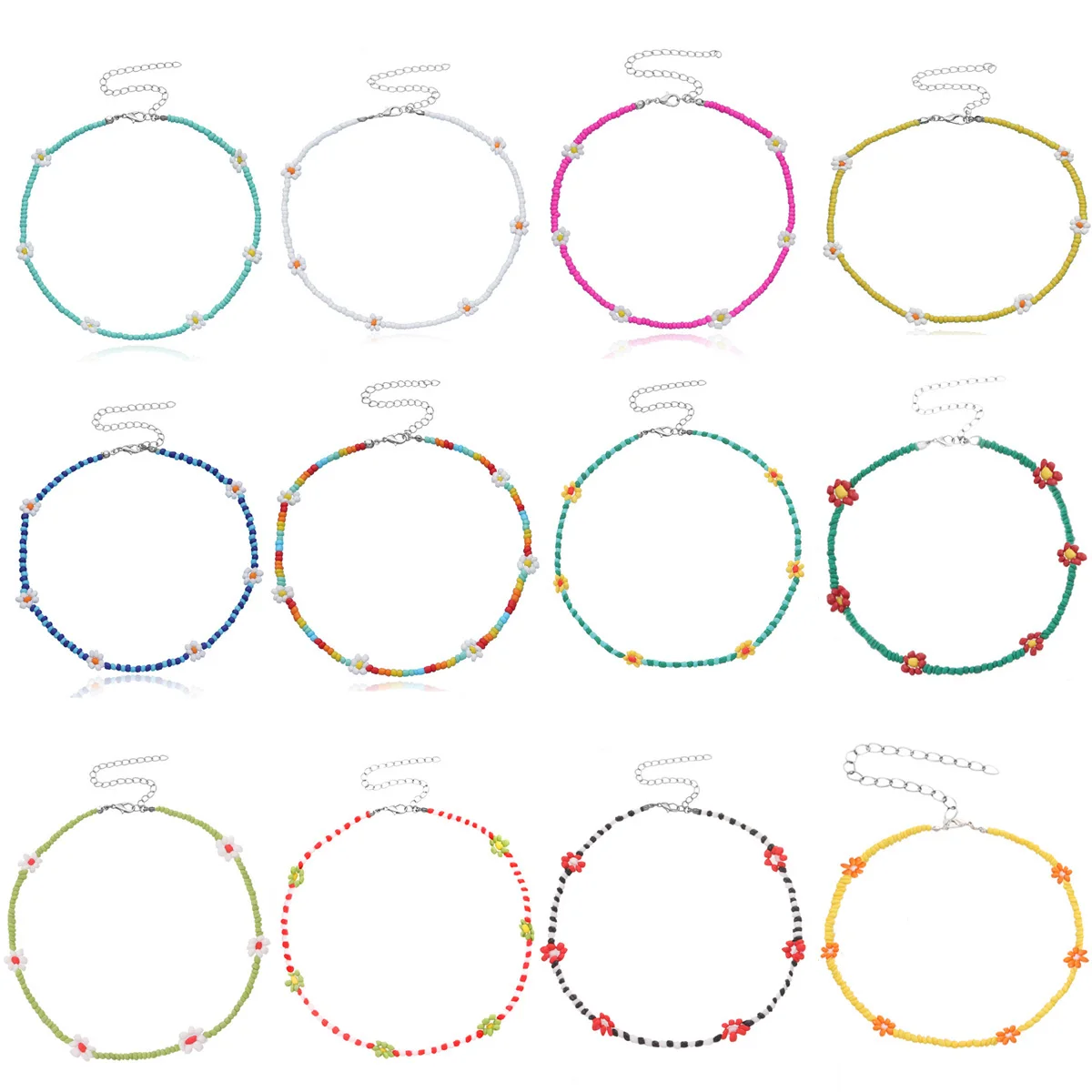 Чокер из бусин в богемном стиле для женщин и девочек, ожерелье в Корейском стиле с цветными маленькими акриловыми бусинами, короткое колье до ключиц, 13 цветов