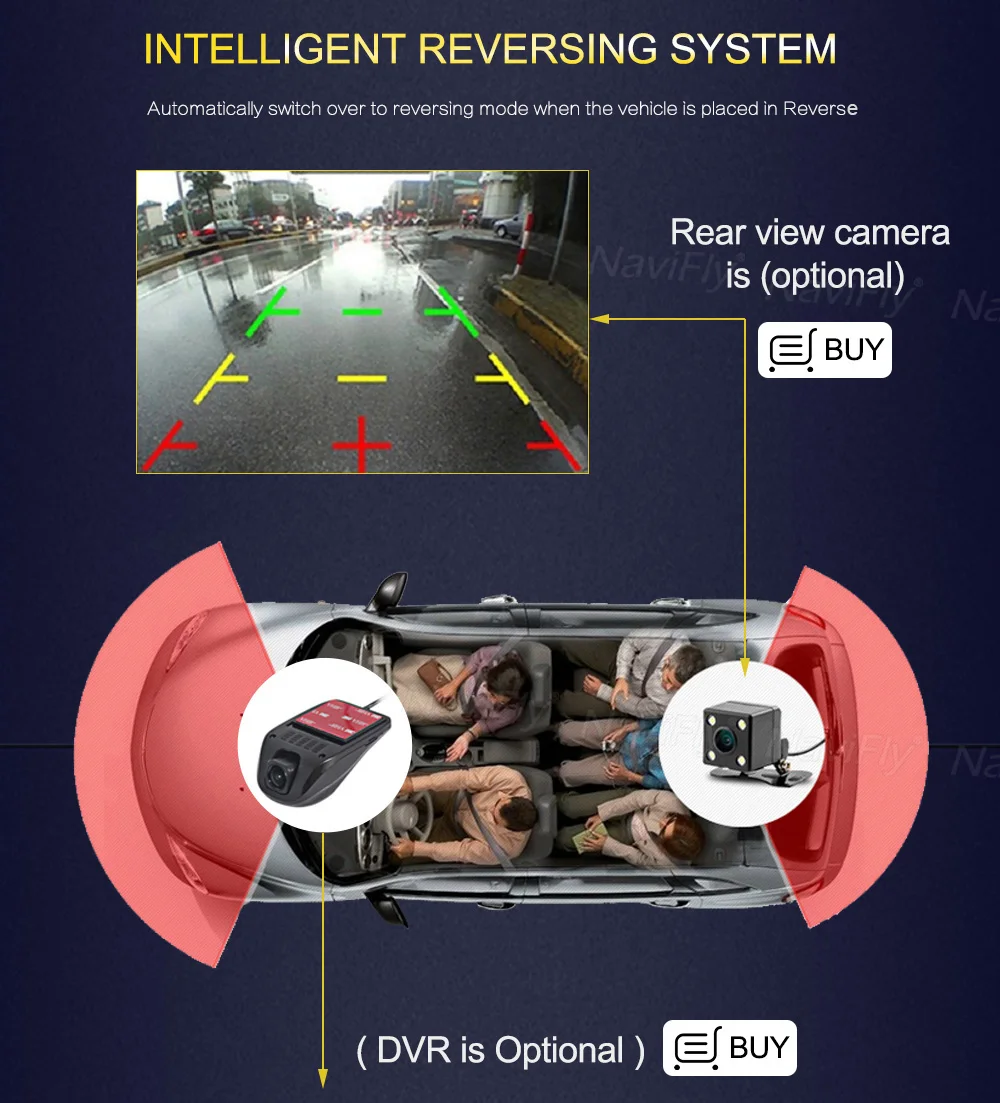 > Поддержка DVR, камера заднего вида funtion