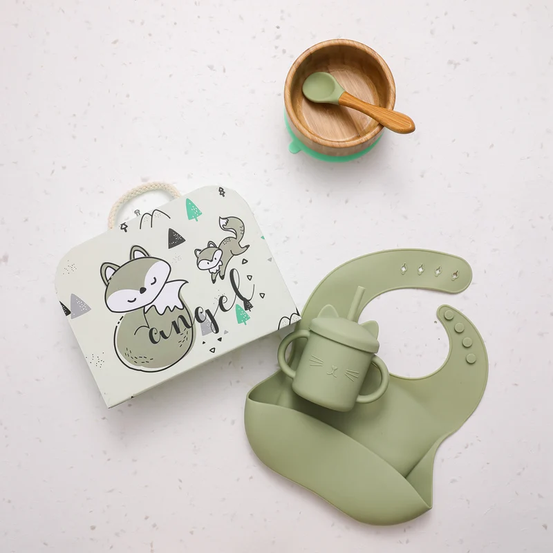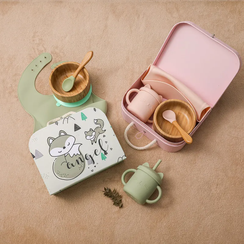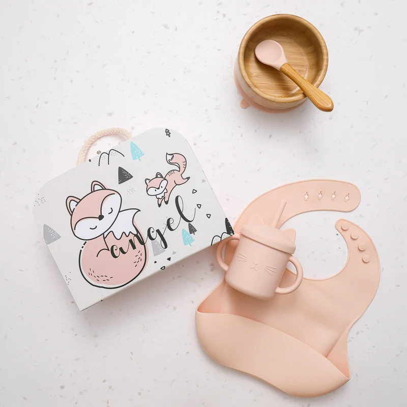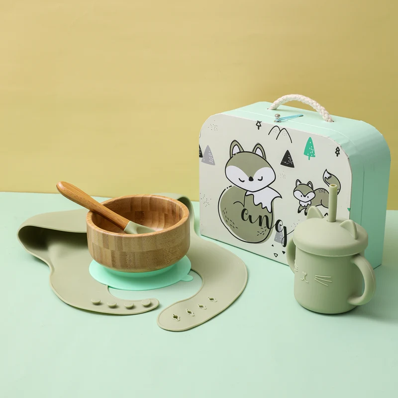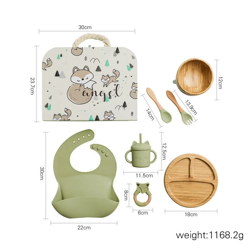 7 шт., набор для кормления детей, Силиконовый Набор для кормления ребенка, принадлежности для кормления ребенка, детская деревянная посуда с чашкой, Детская миска, посуда, подарочный набор