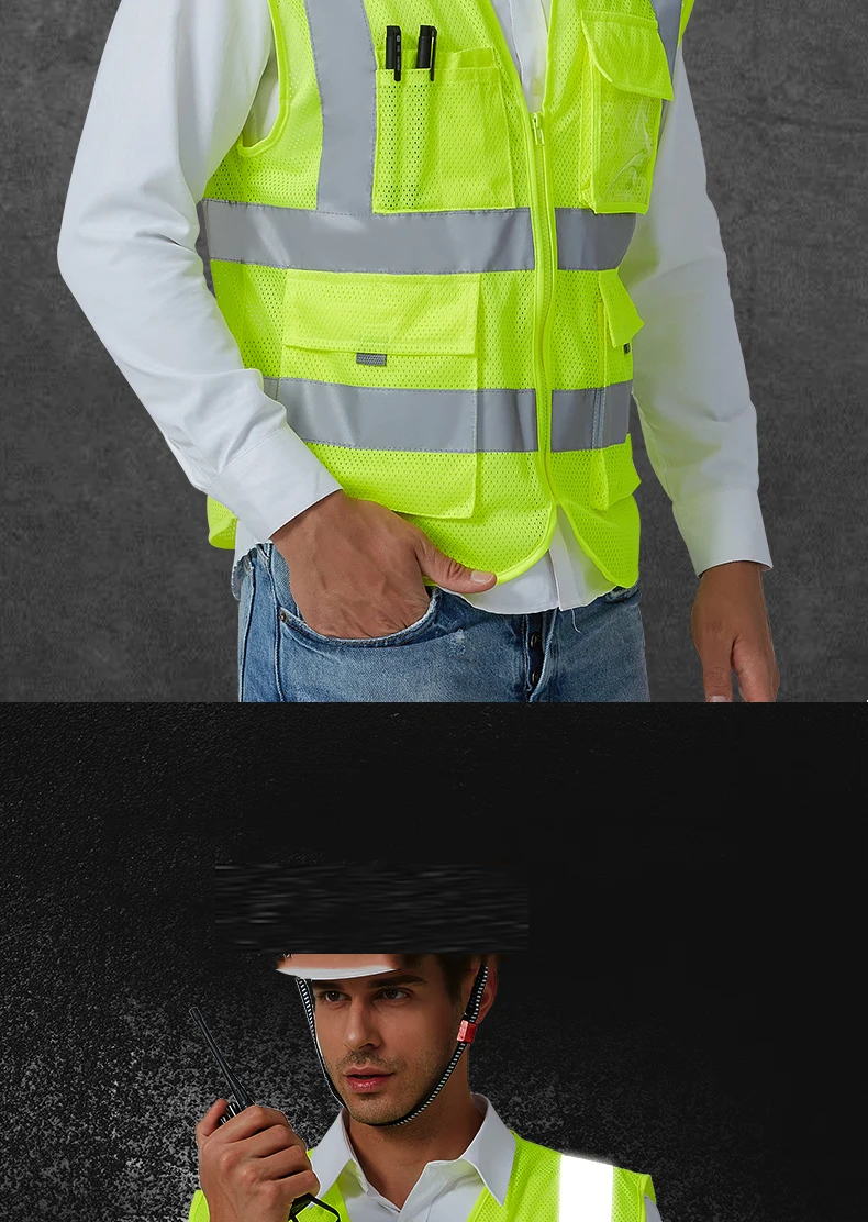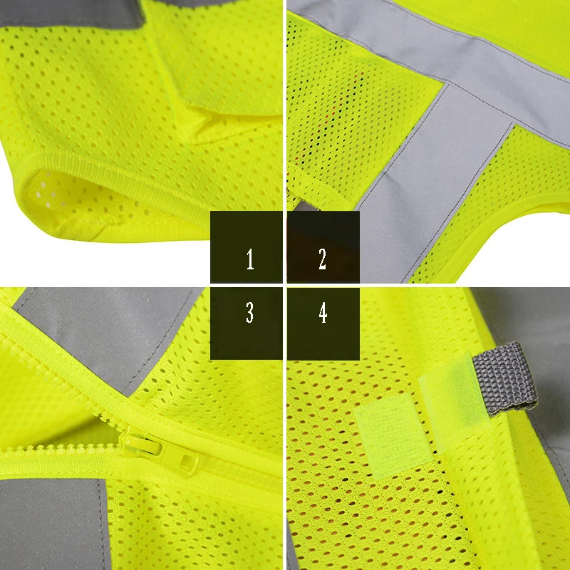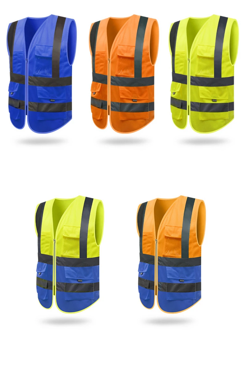 Сетчатый светоотражающий жилет высокой видимости с молнией и карманами, строительный светоотражающий жилет для мужчин и женщин, ANSI класс II