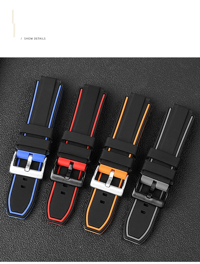 Водонепроницаемый силиконовый ремешок аксессуары для часов 24-16 мм...
